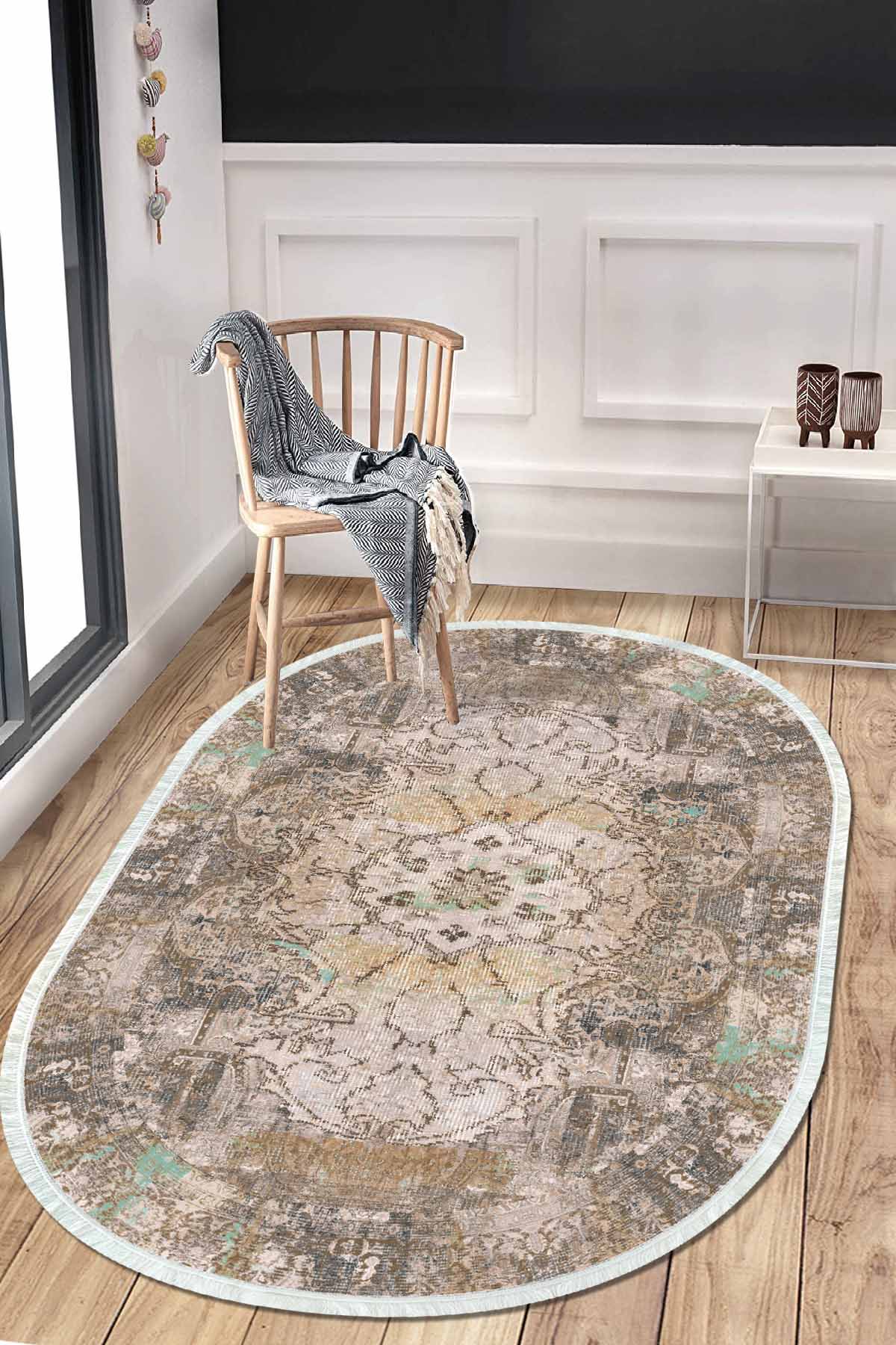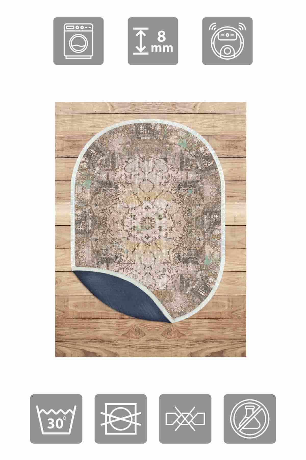 Dimensions and Delivery: 1x Birkilim Oval Washable Silky Non-Slip Base Decorative Carpet | MLN-IP-O-HT-137