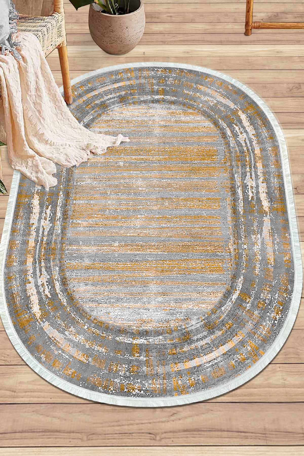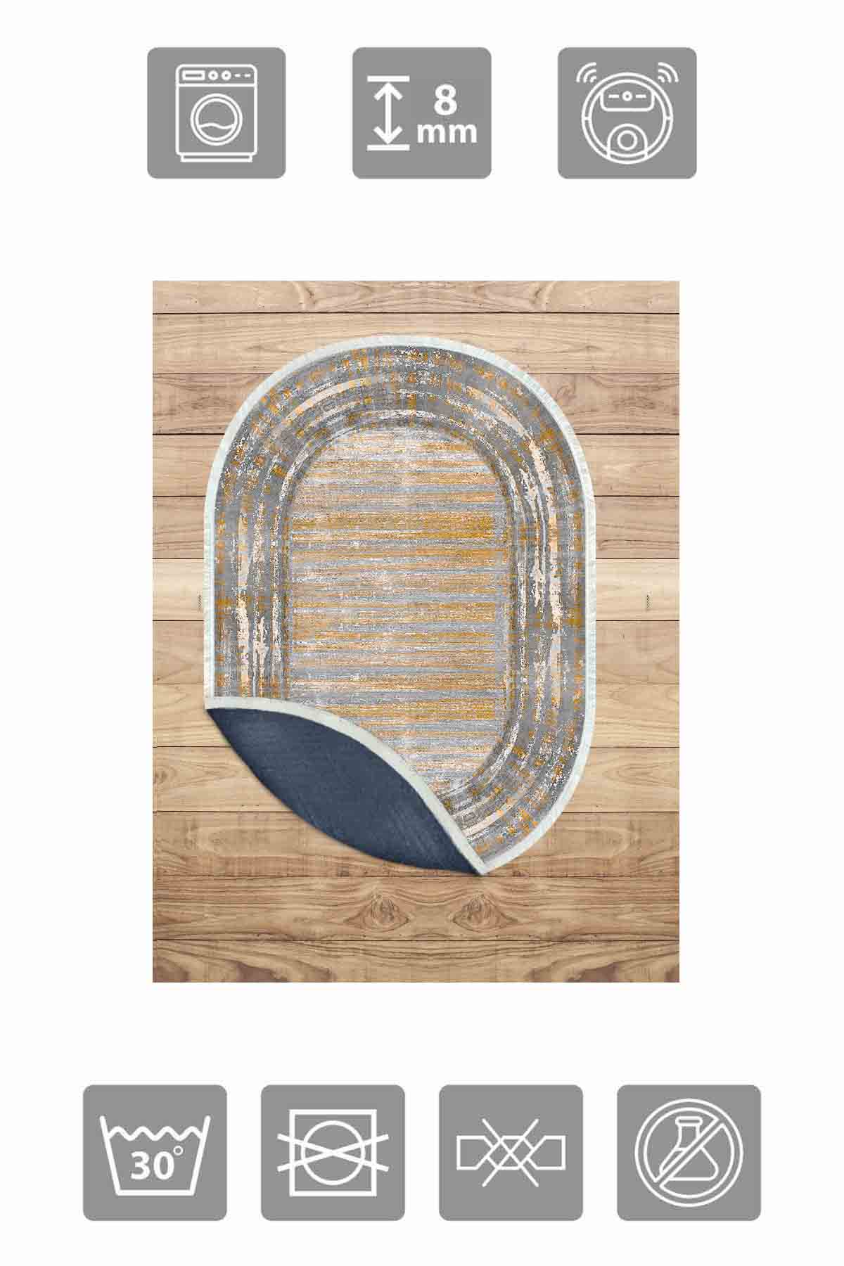 Birkilim Oval Washable Silky Non-Slip Base Decorative Carpet | MLN-IP-O-HY-1297