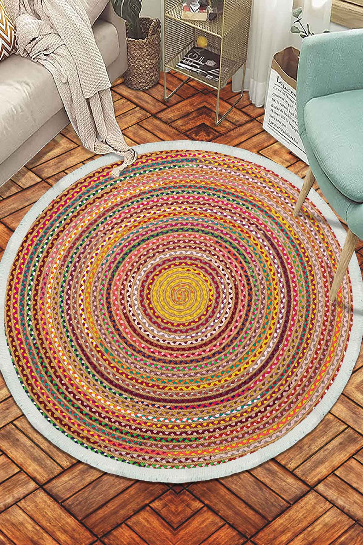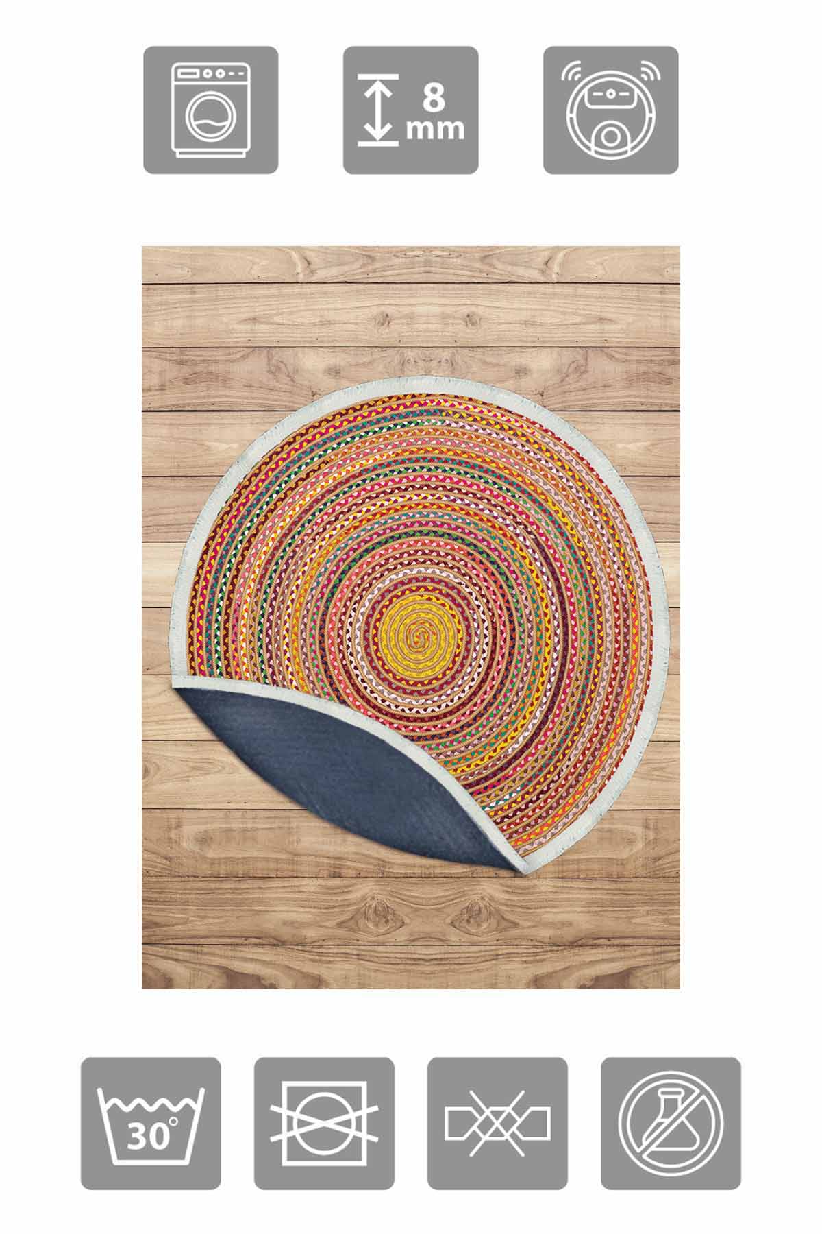 Dimensions and Delivery: 1x Birkilim Round Washable Decorative Carpet Silky Non-Slip Base | MLN-IP-SD-374