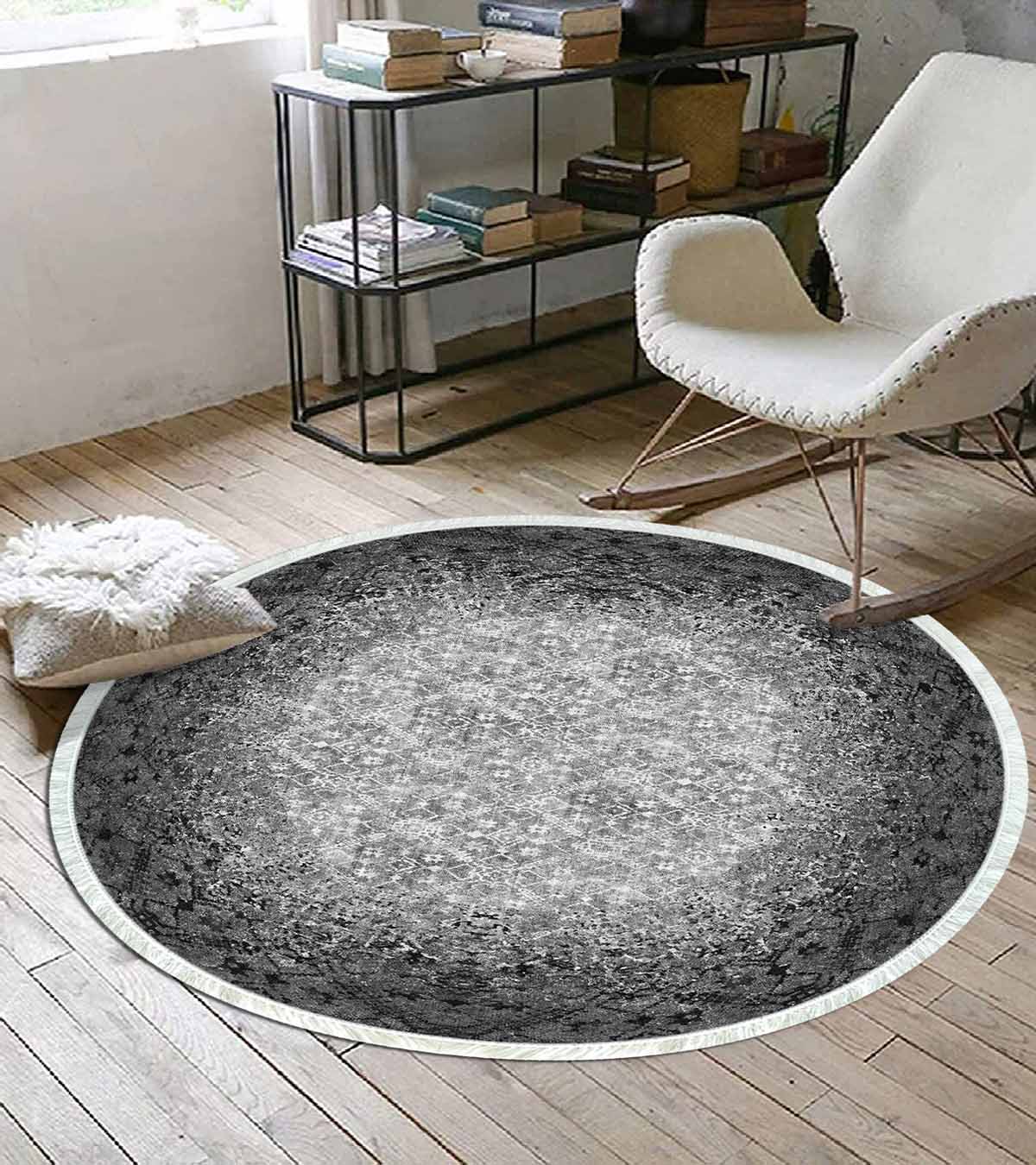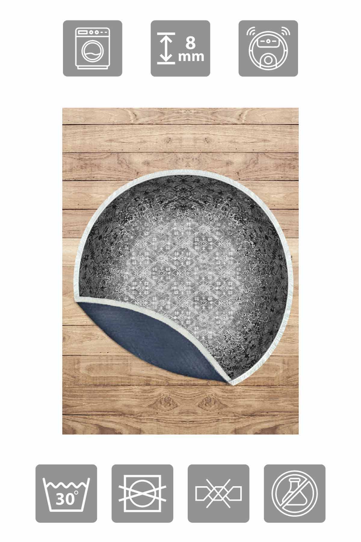 Birkilim Round Washable Decorative Carpet Silky Non-Slip Base | MLN-IP-YU-HT-245