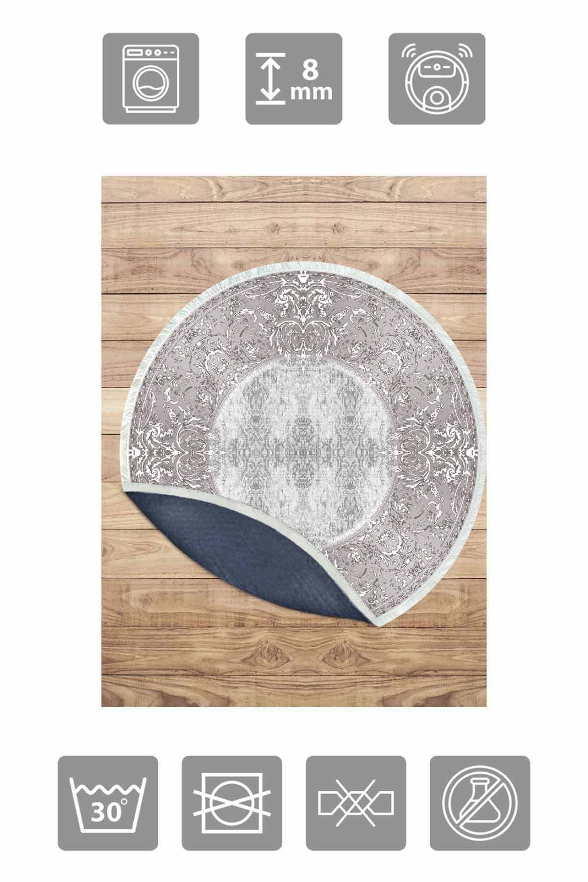 Dimensions and Delivery: 1x Birkilim Round Washable Decorative Carpet Silky Non-Slip Base | MLN-IP-YU-HT-350