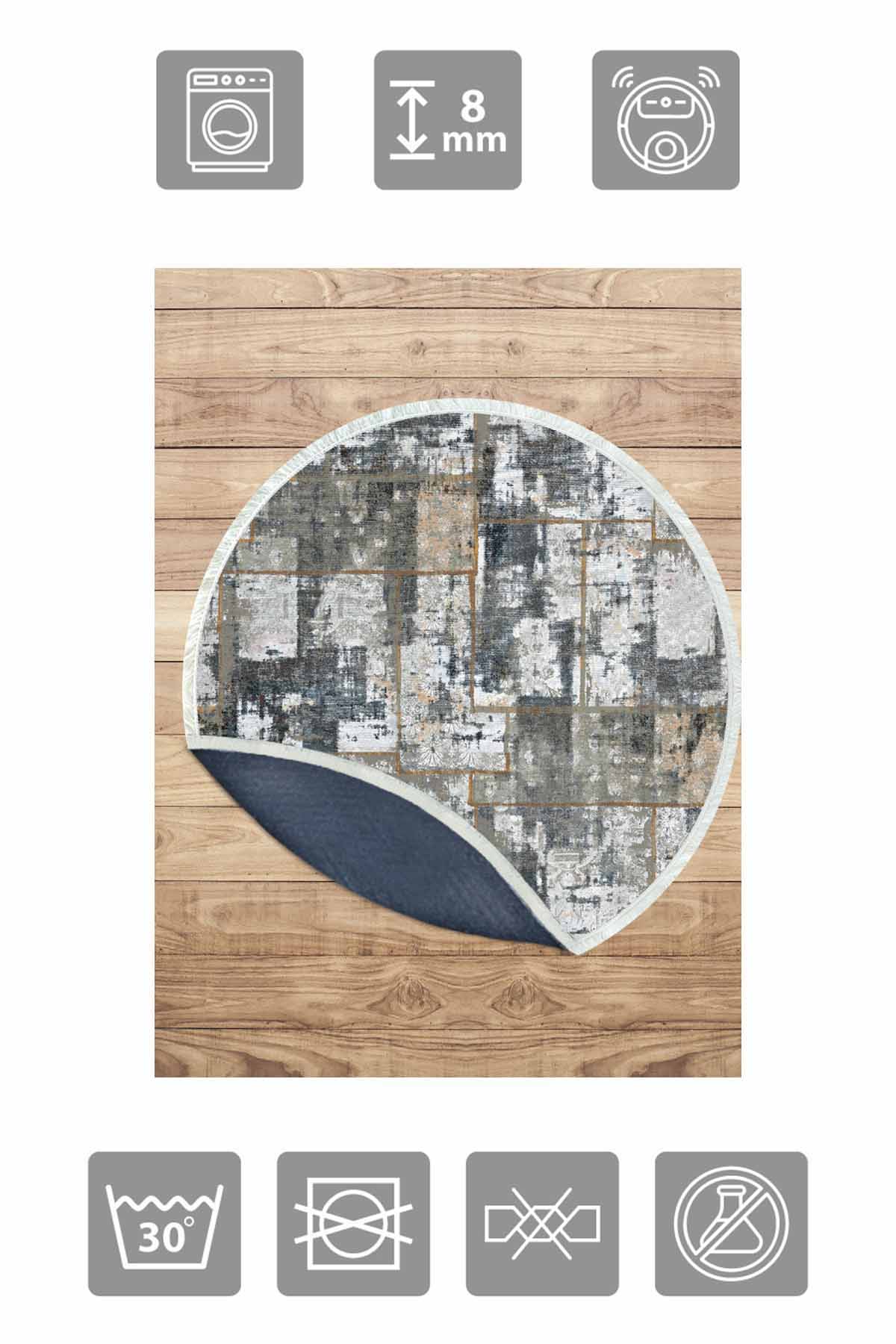 Dimensions and Delivery: 1x Birkilim Round Washable Decorative Carpet Silky Non-Slip Base | MLN-IP-YU-HT-480
