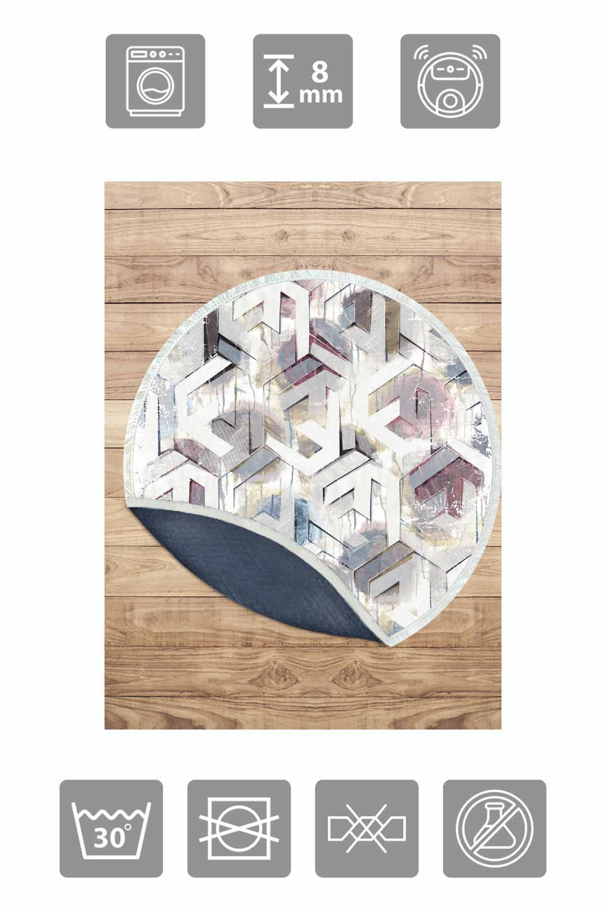 Dimensions and Delivery: 1x Birkilim Round Washable Decorative Carpet Silky Non-Slip Base | MLN-IP-YU-HT-484