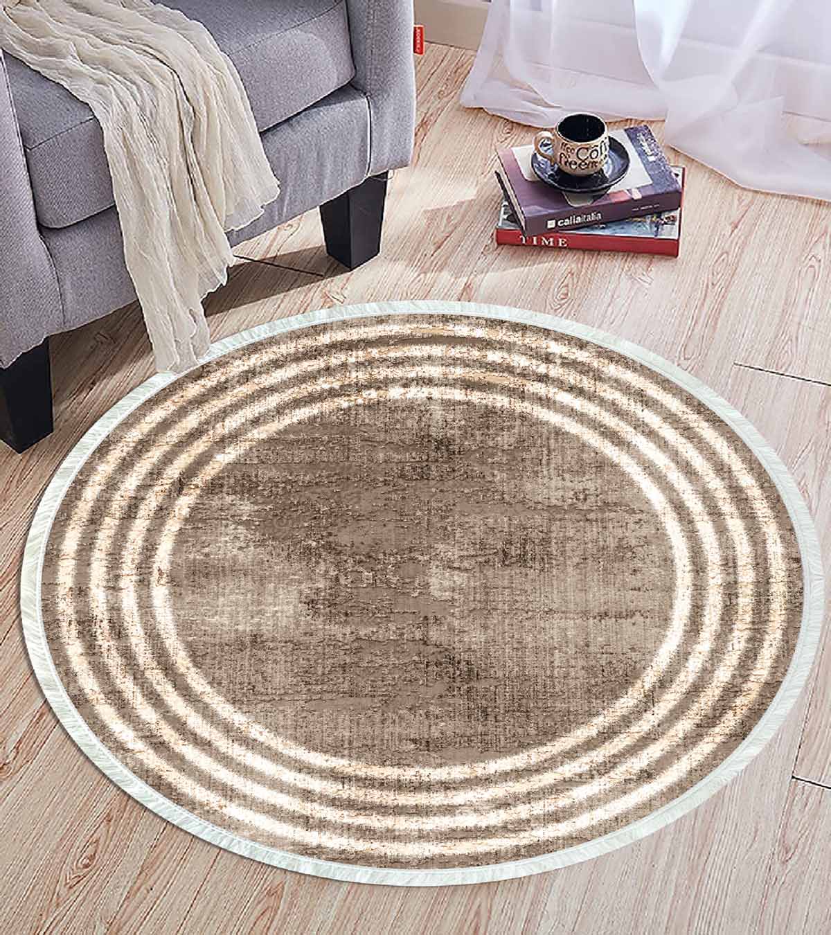 Dimensions and Delivery: 1x Birkilim Round Washable Decorative Carpet Silky Non-Slip Base | MLN-IP-YU-HT-487