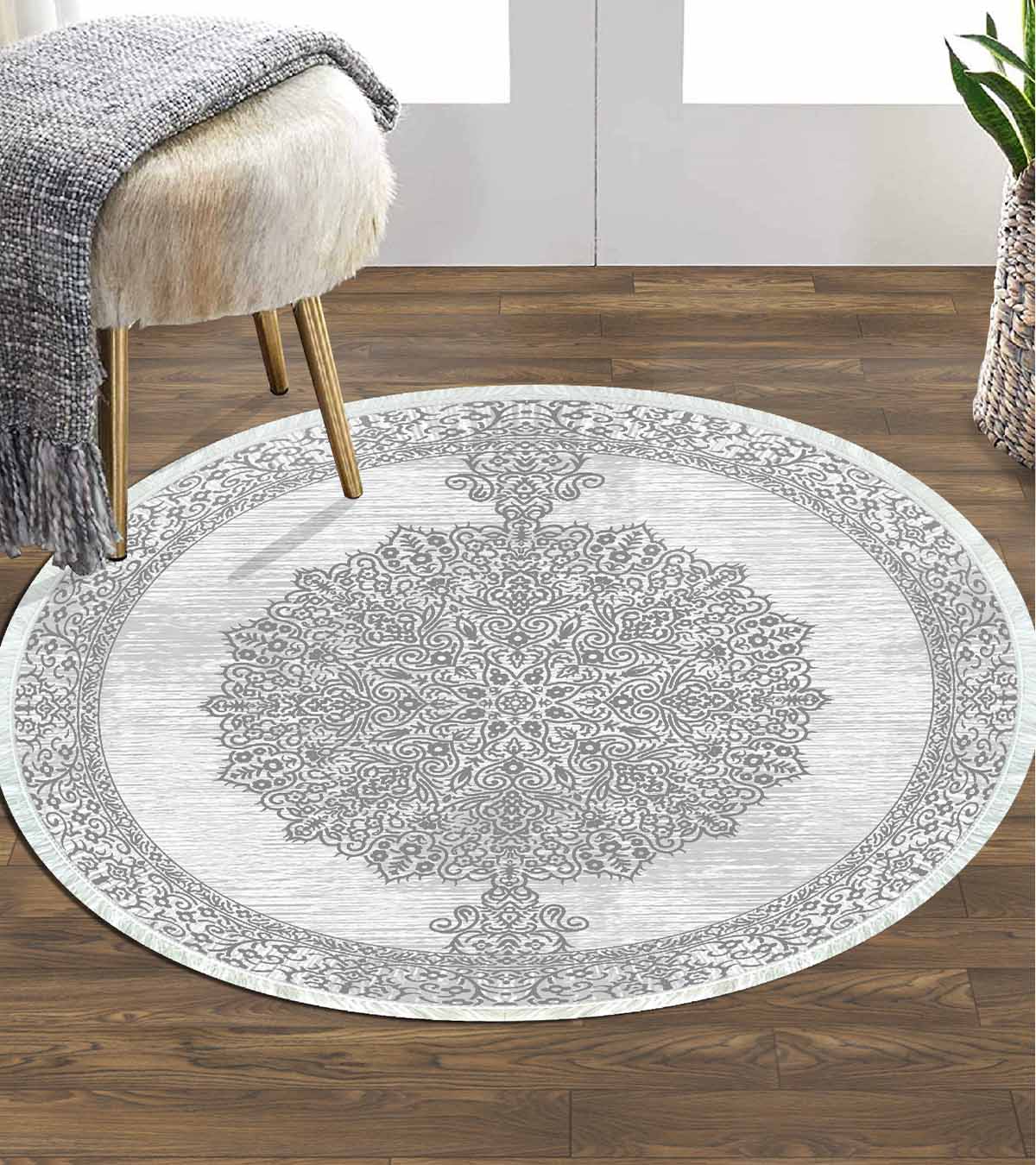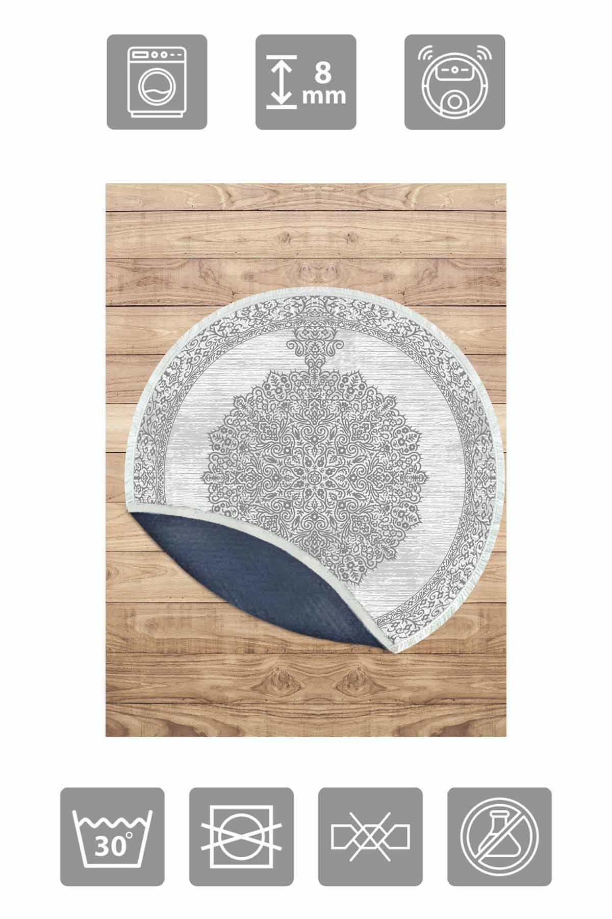 Dimensions and Delivery: 1x Birkilim Round Washable Decorative Carpet Silky Non-Slip Base | MLN-IP-YU-HY-1036