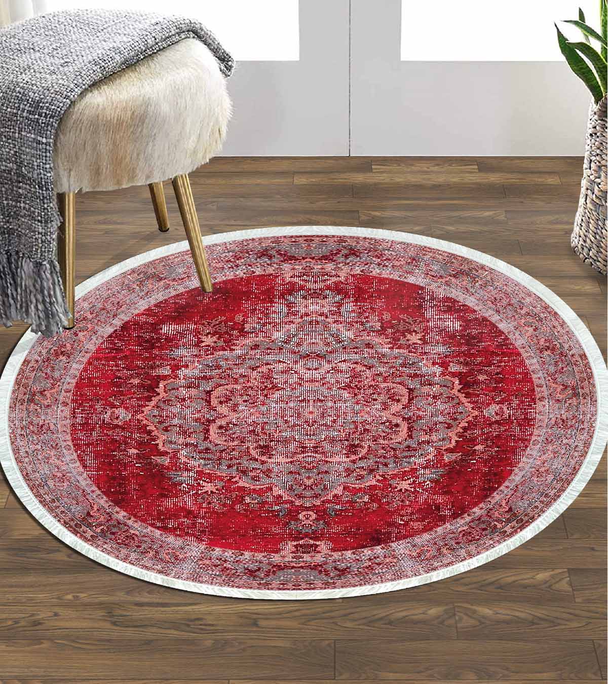 Dimensions and Delivery: 1x Birkilim Round Washable Decorative Carpet Silky Non-Slip Base | MLN-IP-YU-HY-1198