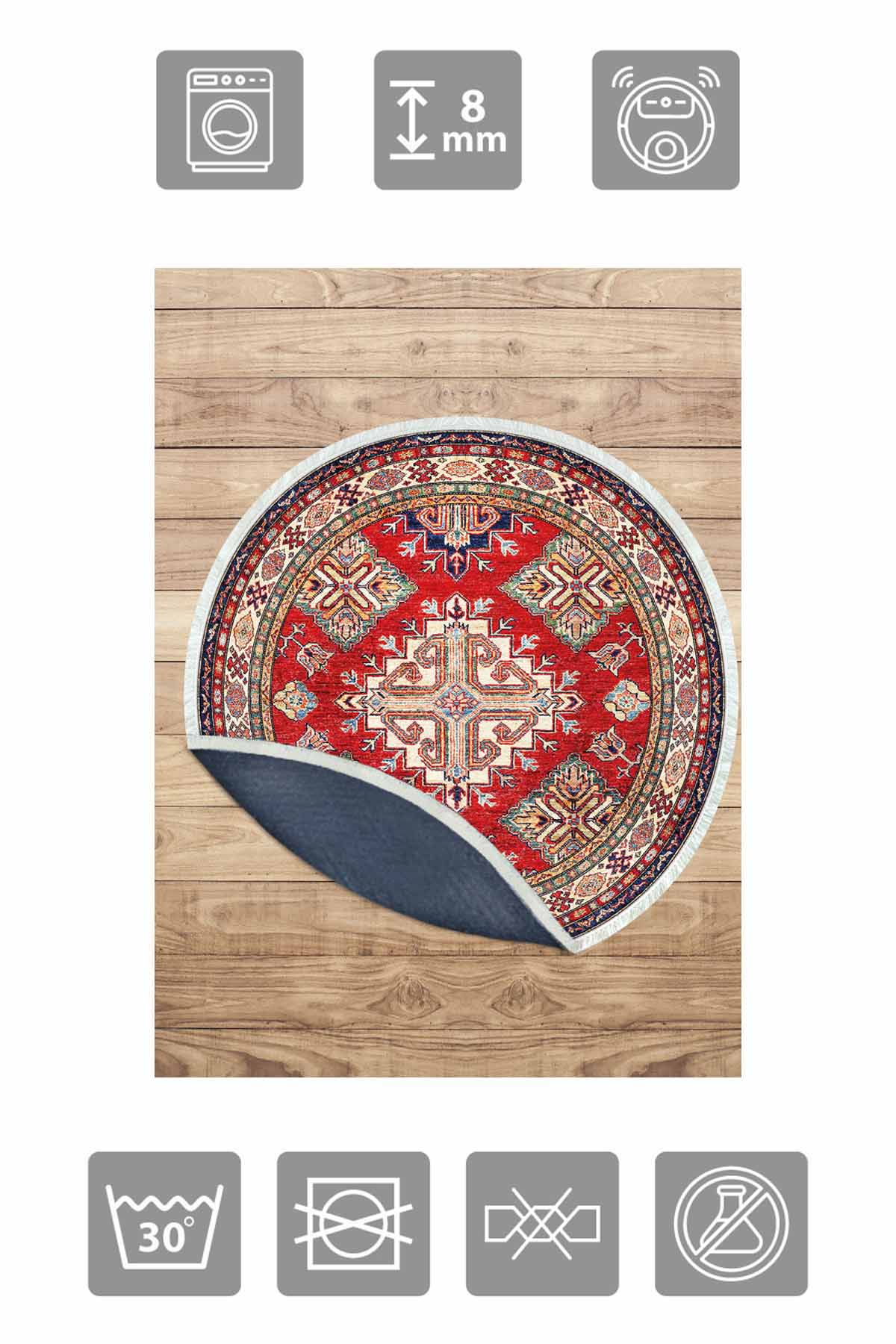 Birkilim Round Washable Decorative Carpet Silky Non-Slip Base | MLN-IP-YU-HY-1439