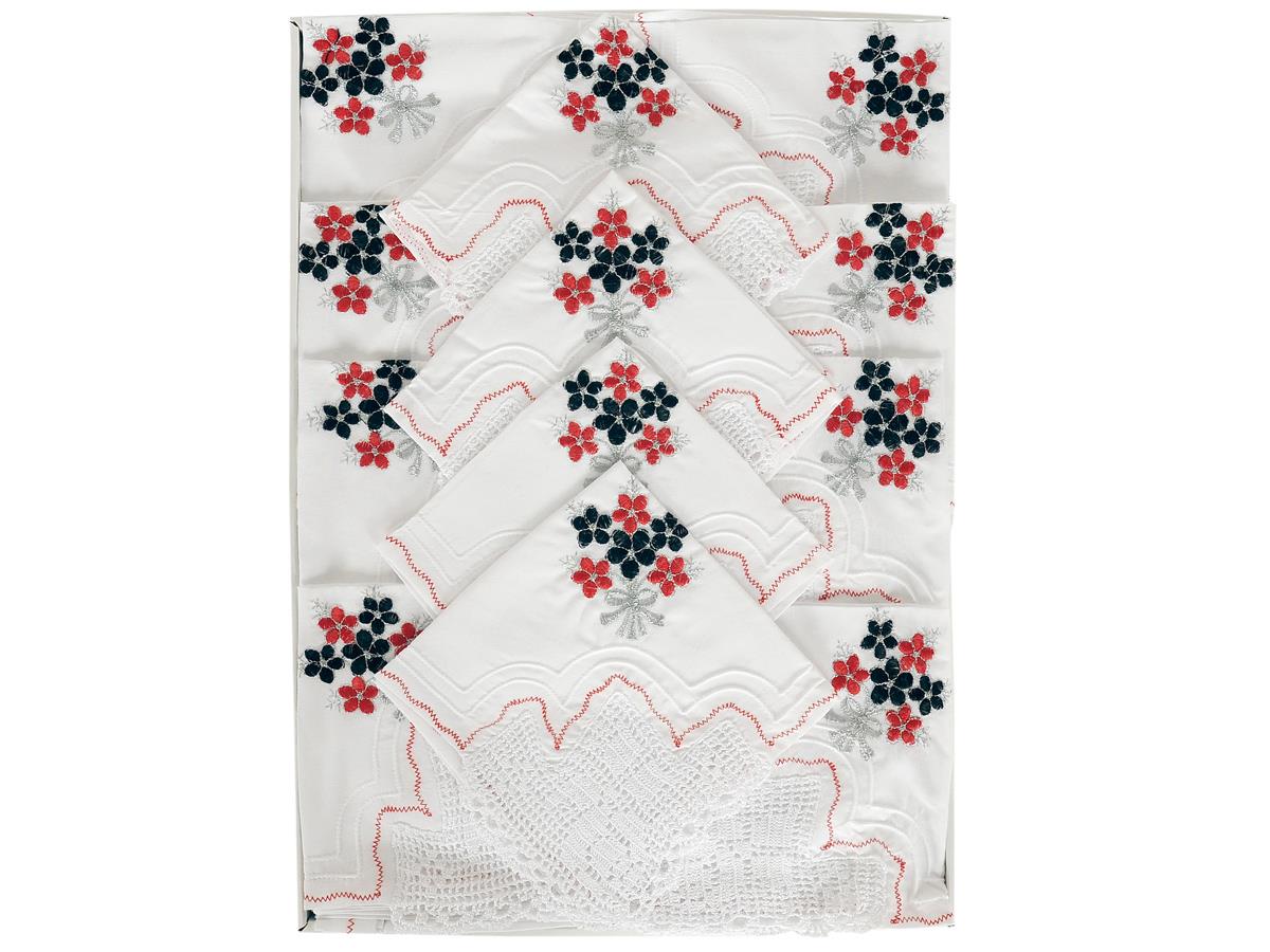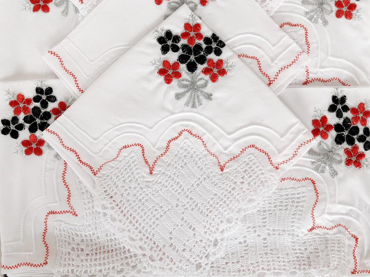 Product information "Çeyizlik El İşi Dantel Mutfak Takımı Daisy Kırmızı Siyah"