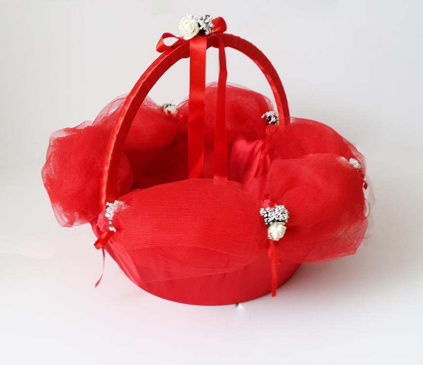 Üretiminde kırmızı tül ve kırmızı saten kumaş kullanılmıştır.