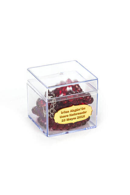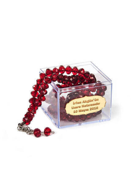 Clear Plastic Box, 99 Crystal Hajj Umrah Gift Rosary Burgundy With Name Plate