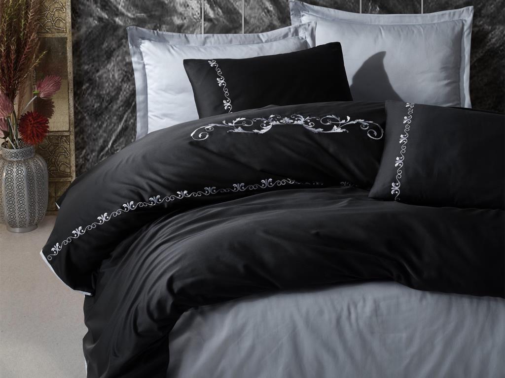 Product information "Cottonbox Embroidered Satin Gloria Double Duvet Cover Set Gray"