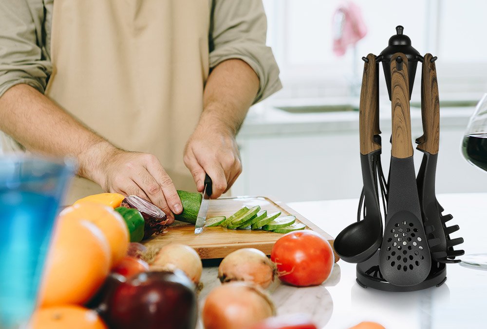 Delivery and Dimensions: 1x CS-Kochsysteme Steinfurt Kitchen Service Tools Set 7 Piece | Black | Brown | 064679