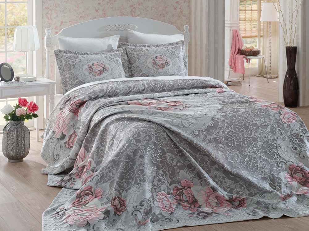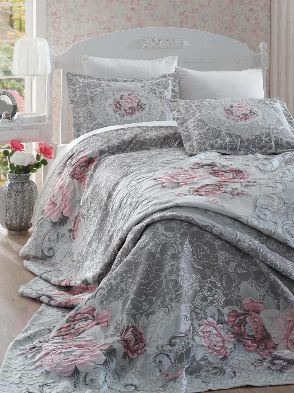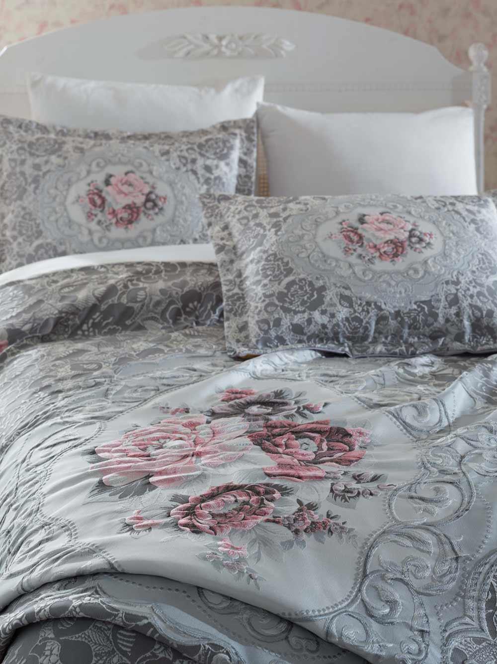 Dantela Elita Jakarlı Pano Yatak Örtüsü Gri