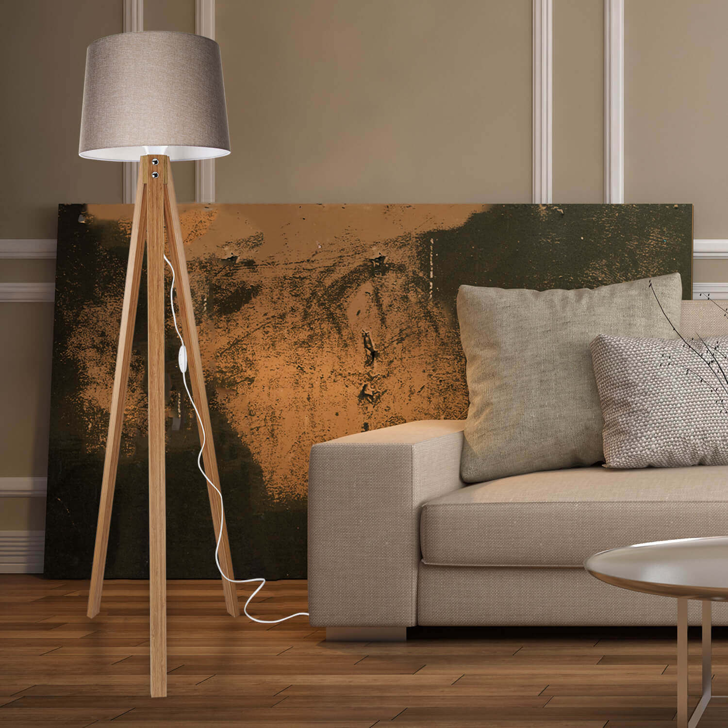 Product information "Deco Floor Lamp Bamboo Foot Sand Beige Hat"