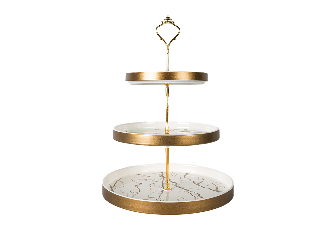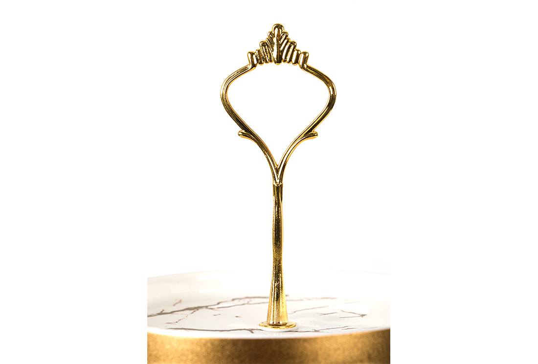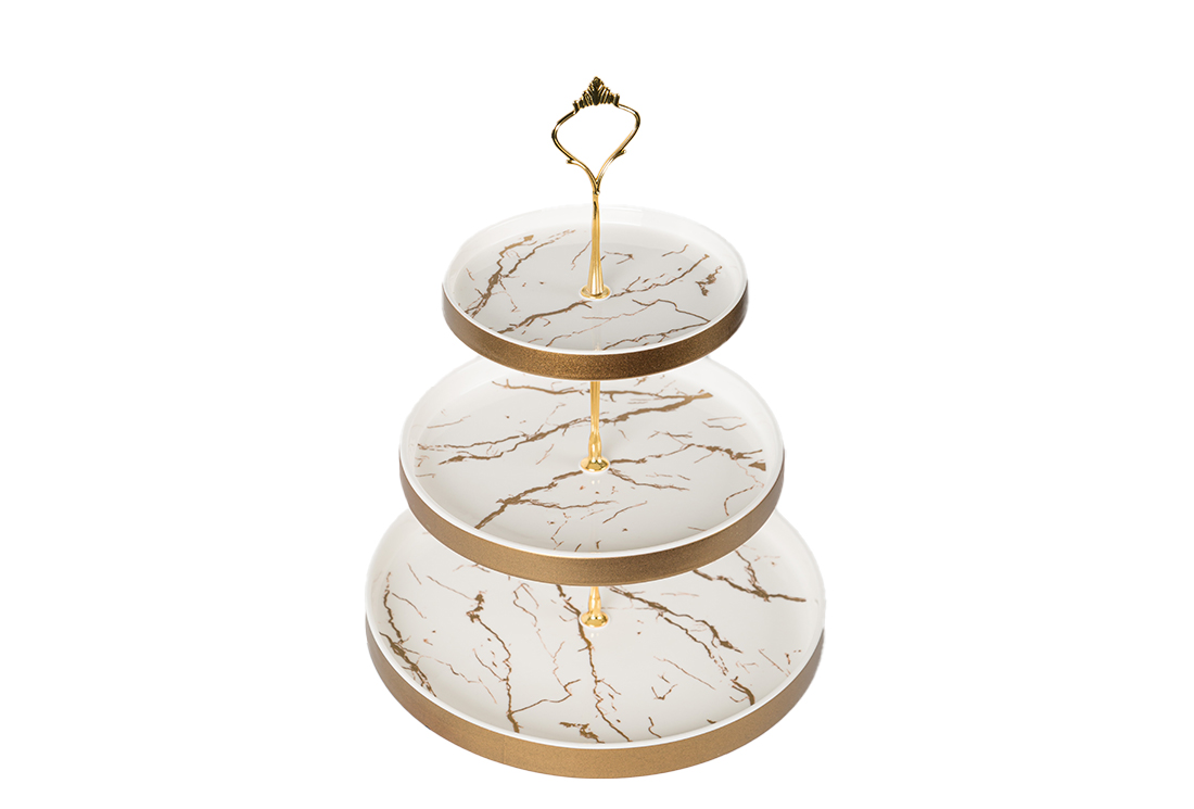 Delivery and Dimensions : 1x Dekonaz | 3 Layers Marble Pattern Shelf Service Plate | White gold