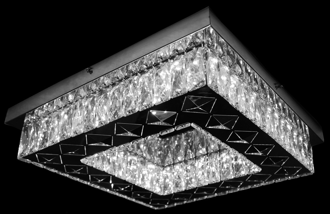 Delivery and Dimensions : 1 x Decoonase Crystal LED Square Ceiling Lamp MP3 Bluetooth 50cm | DTX-C27-23