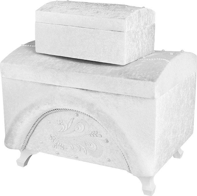 Delivery and Dimensions: 1 x Decoonaz 2-Piece Pearl Decorated Dowry Chest | Cream | SDK-0003