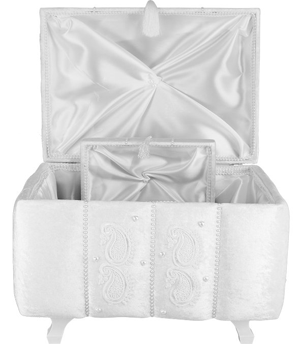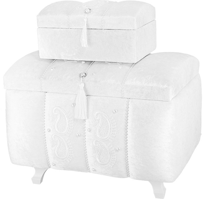 Delivery and Dimensions: 1 x Decoonaz 2-Piece Pearl Decorated Dowry Chest | Cream | SDK-0009