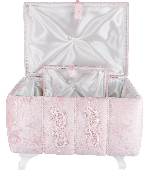 Delivery and Dimensions: 1 x Decoonaz 2-Piece Pearl Decorated Dowry Chest | Pink | SDK-0007