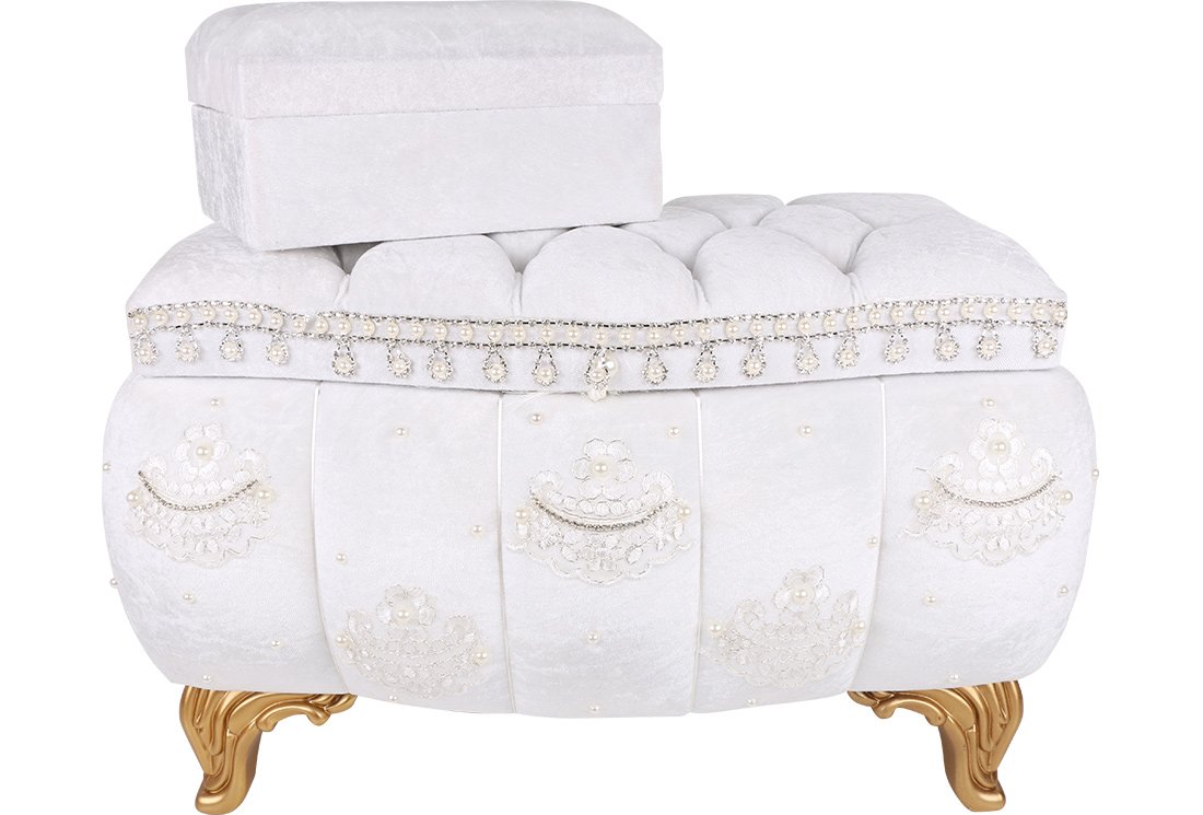 Delivery and Dimensions: 1 x Decoonaz 2-Pearl Lace Decorated Dowry Chest | White | SDK-0025