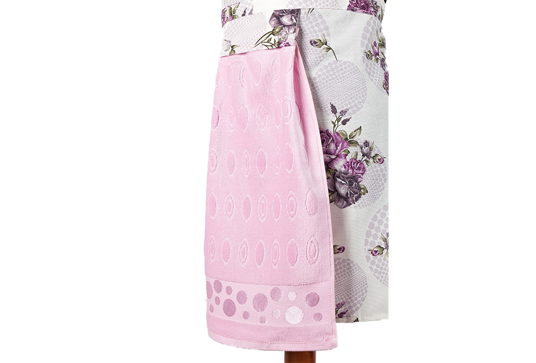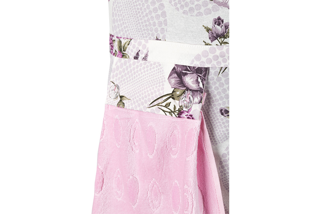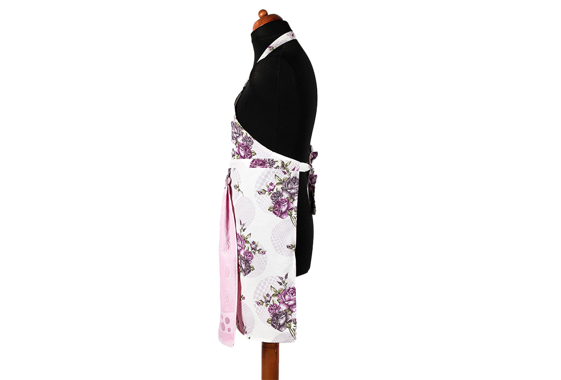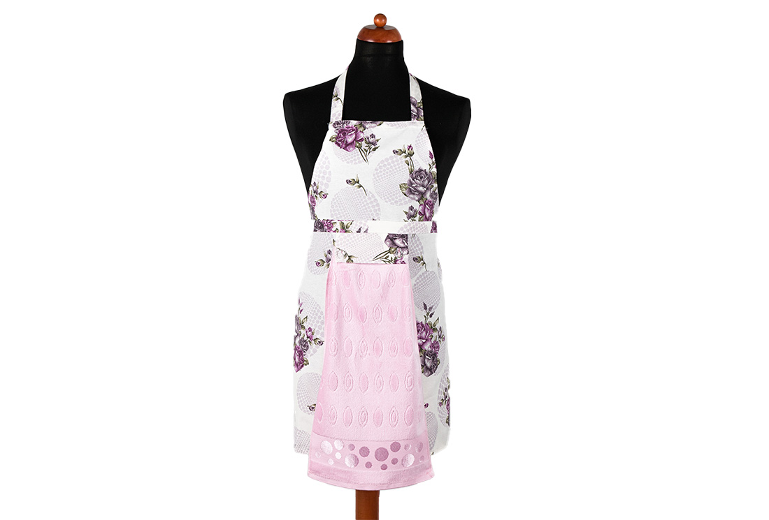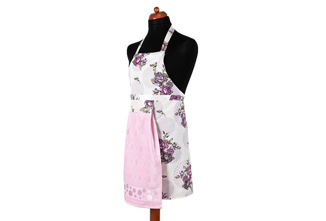 Delivery and Dimensions : 1x Dekonaz Floral Pattern Kitchen Apron | Pink Towel and Hand Cloth Gift | 73cm x 59cm