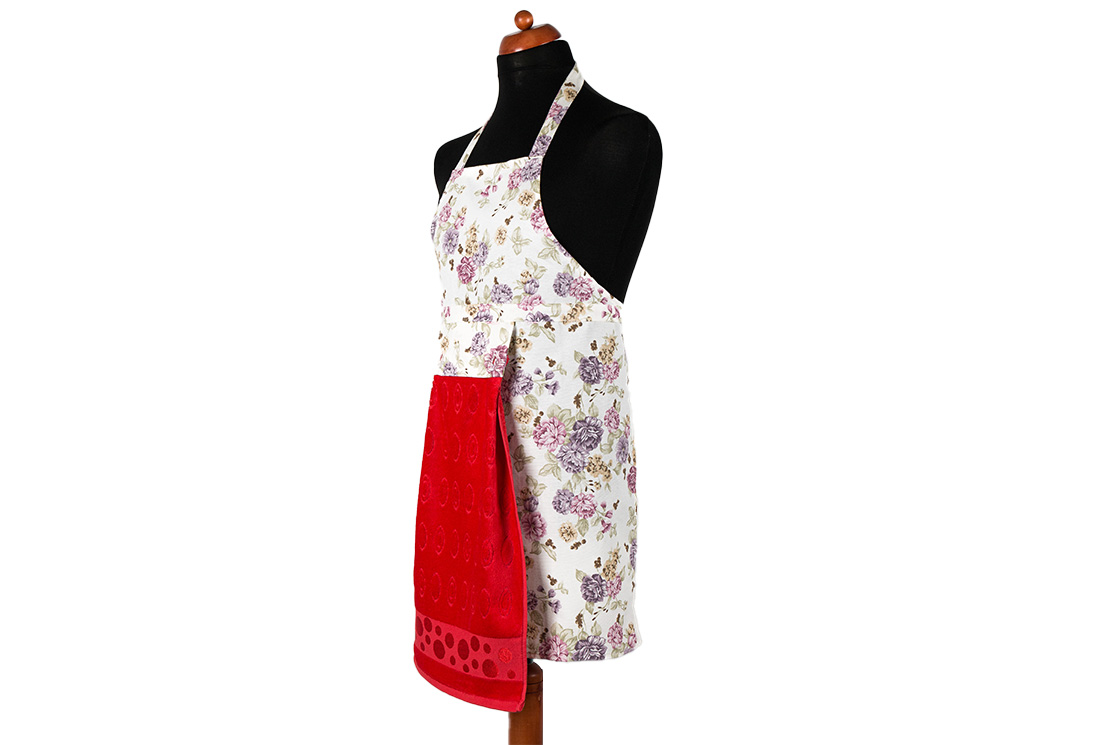 Delivery and Dimensions : 1x Dekonaz Floral Pattern Kitchen Apron | Red Towel and Hand Cloth Gift | 73cm x 59cm