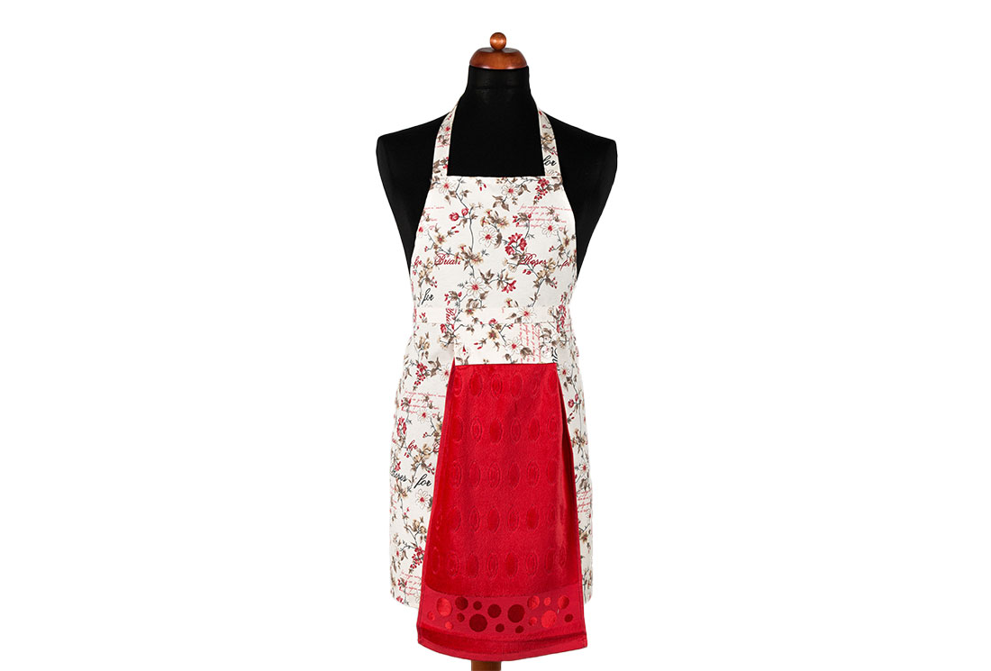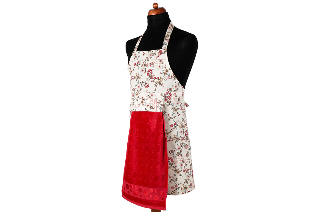 Delivery and Dimensions : 1x Dekonaz Floral Pattern Kitchen Apron | Red Towel and Hand Cloth Gift | 73cm x 59cm