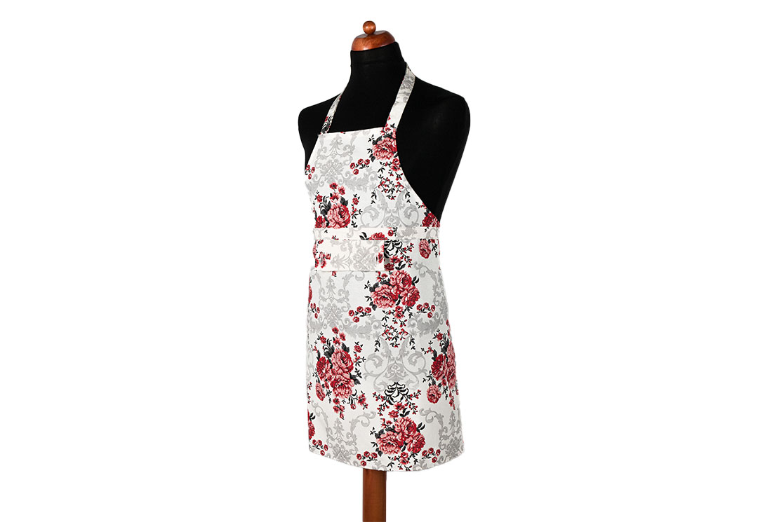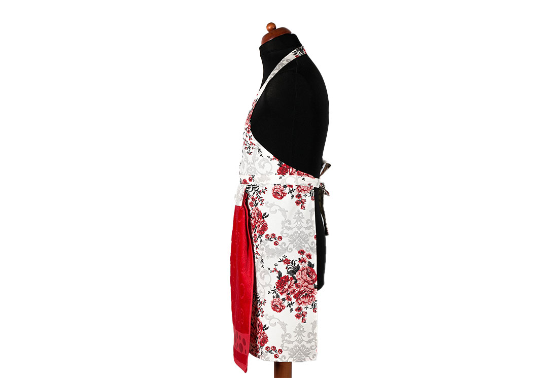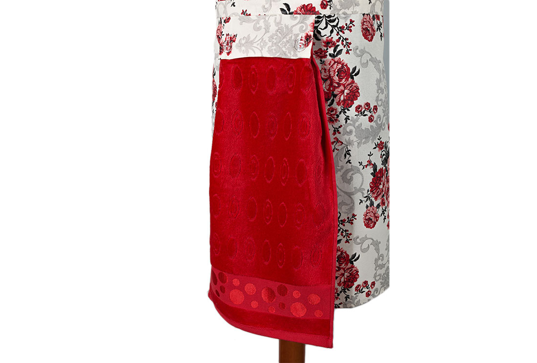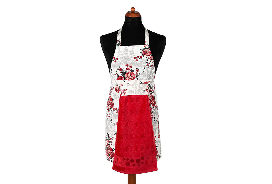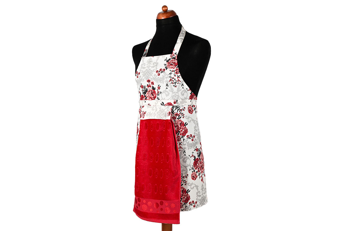Delivery and Dimensions : 1x Dekonaz Floral Pattern Kitchen Apron | Red Towel and Hand Cloth Gift | 73cm x 59cm