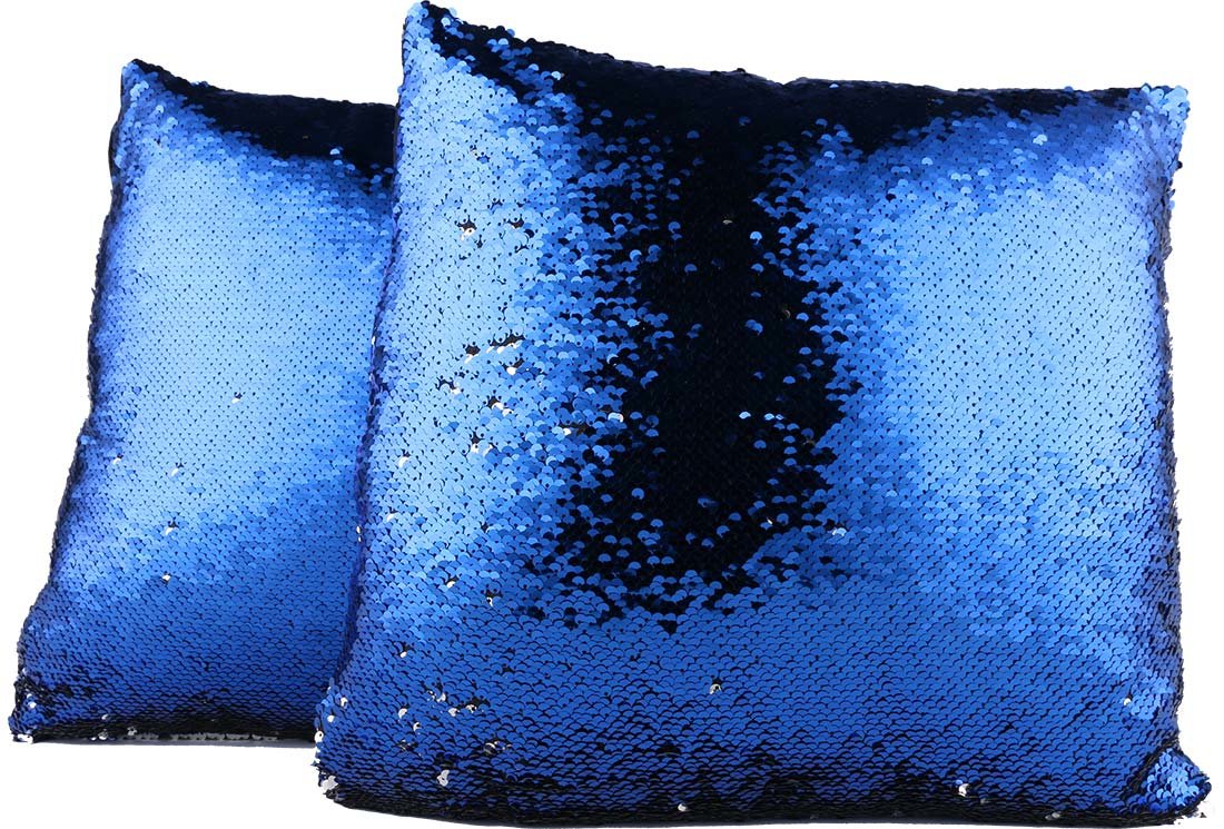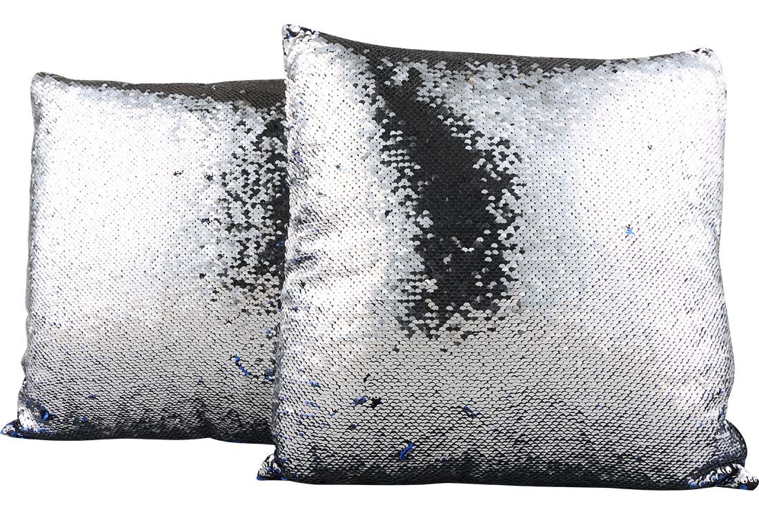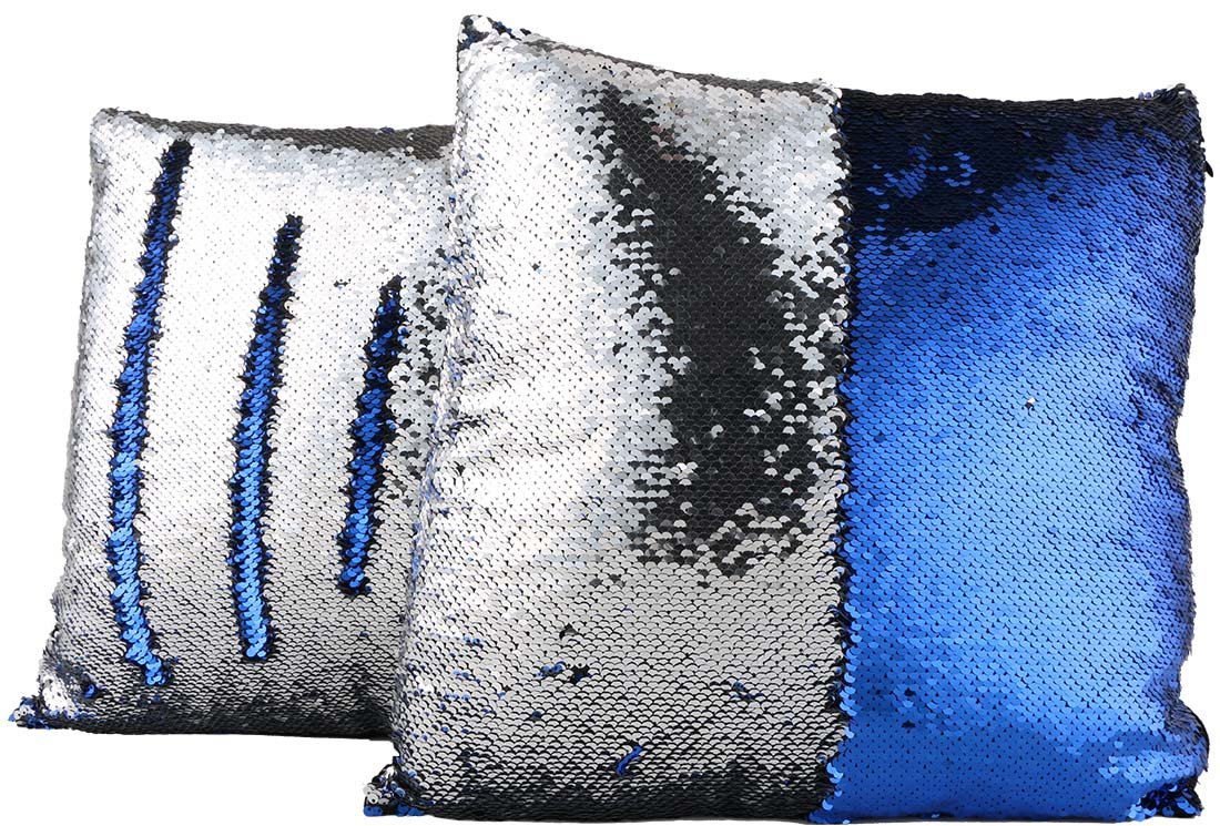 Delivery and Dimensions: 1 x Decorated Modern Design Decorative Sequin Pillow 40x40cm | Blue / Silver | MTL-0056