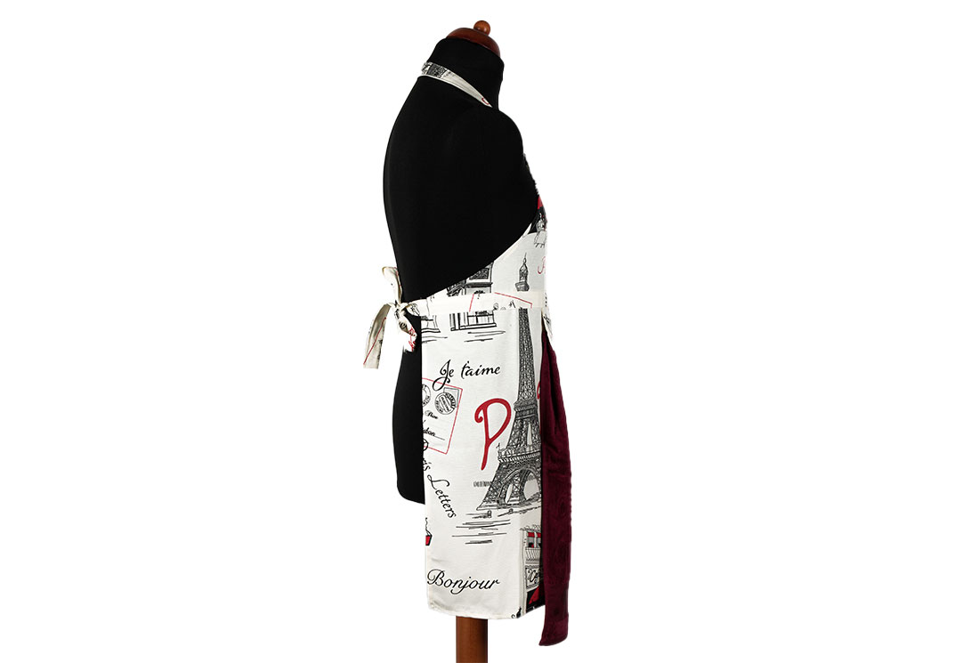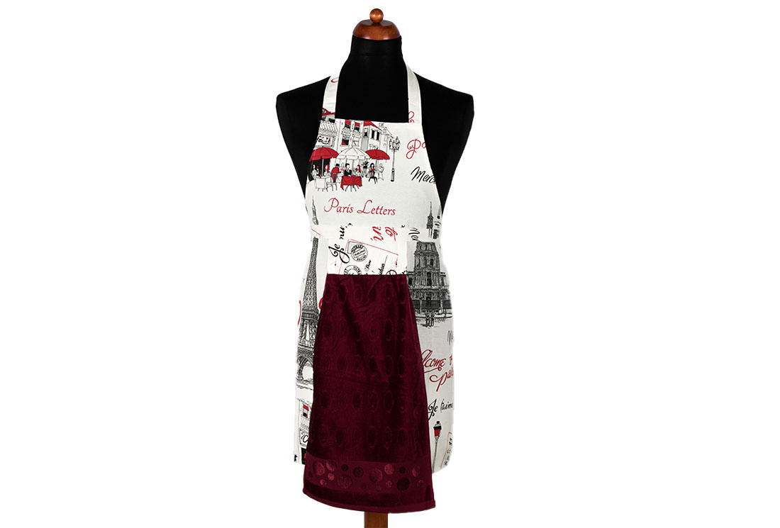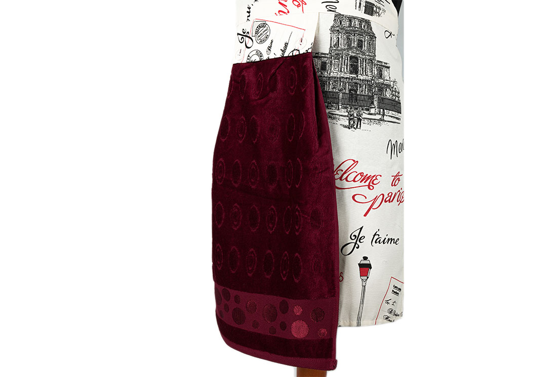 Delivery and Dimensions : 1x Dekonaz Patterned Kitchen Apron | With Claret Red Towel and Hand Cloth Gift | 73cm x 59cm