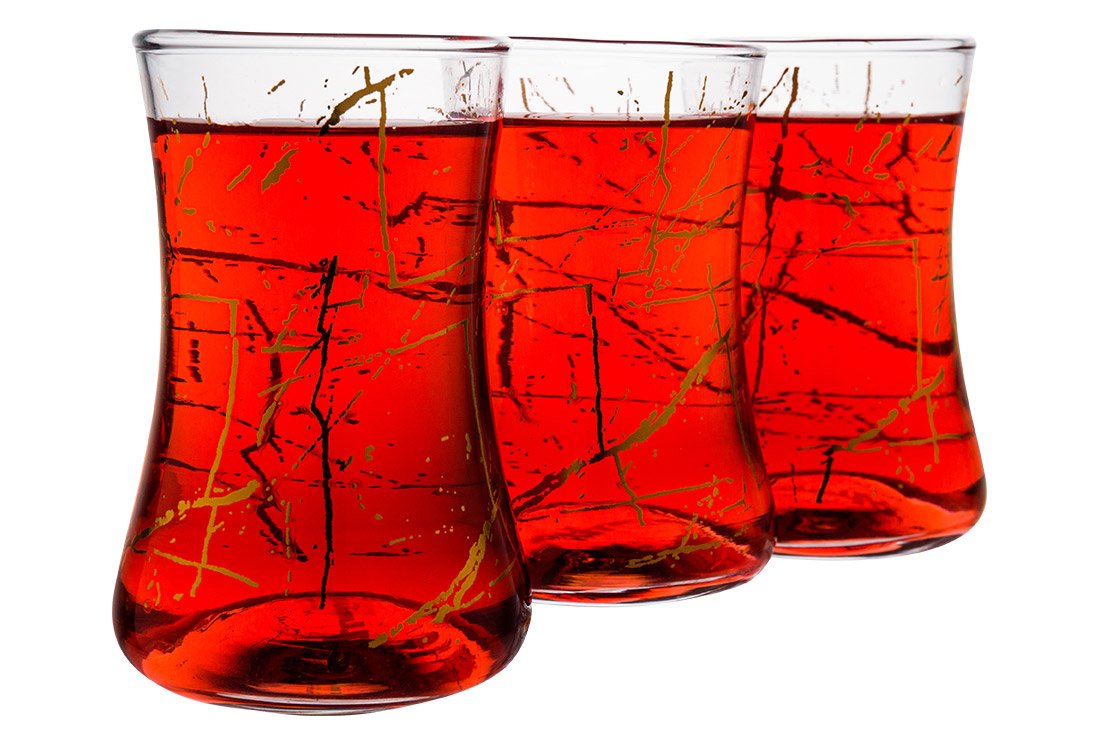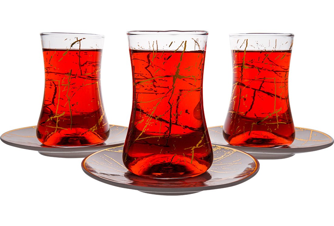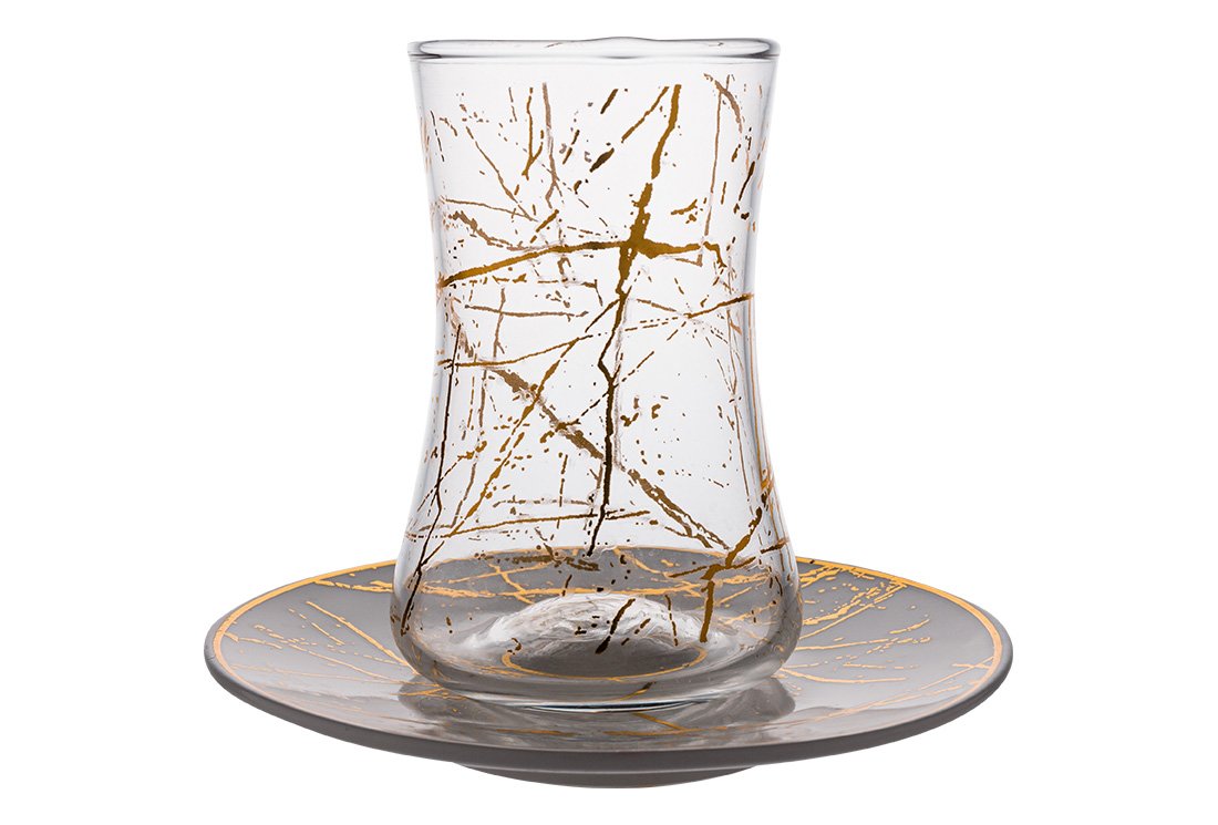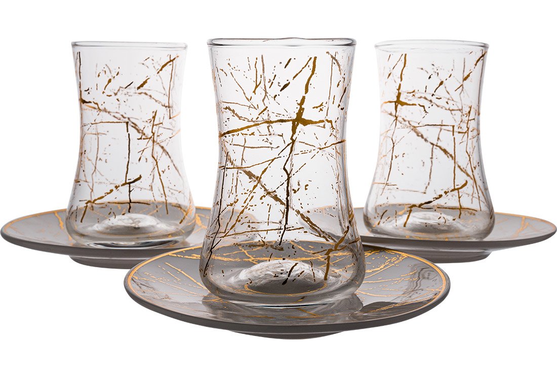 Product Name: Dekonaz Set of 6 Tea Glasses | Gold Color Patterned White Plate | 12 Pieces | AL-6513