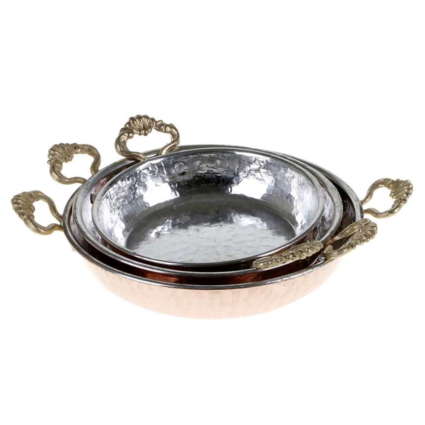 Teslimat & Boyut: 1 x Dekonaz Bakır Menemen Tava Seti | 3 Parça | M-5551