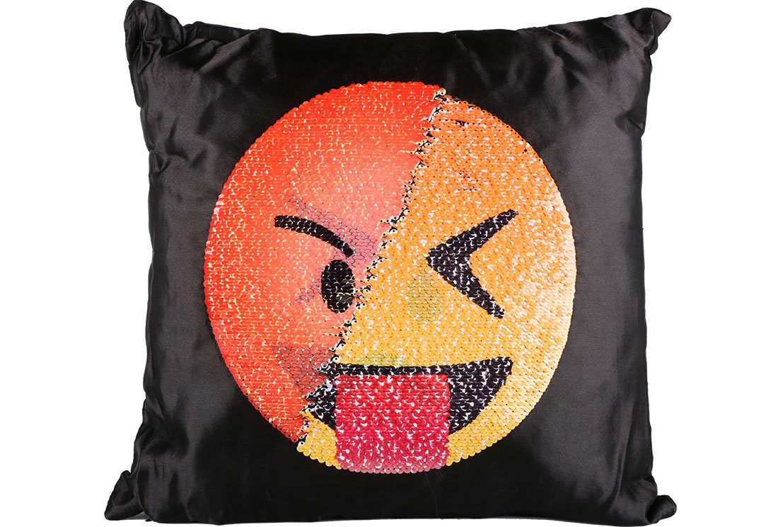 Delivery and Dimensions: 1 x Dekonaz Decorative Sequin Pillow 40x40cm | Angry Emoji | MTL-0018
