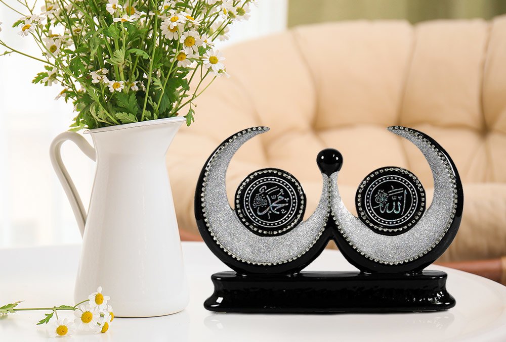 Delivery and Dimensions: 1 x Dekonaz "Allah and Mohammed" Written Religious Trinket | Black | 29x34cm I Mck-016-black