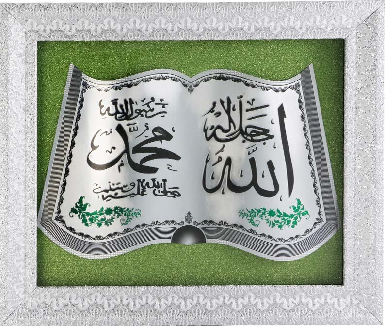Delivery and Dimensions: 1 x Dekonaz "Allah Muhammed" Religious Islamic Decorative Painting Silver | 50x60cm | TM-114-6