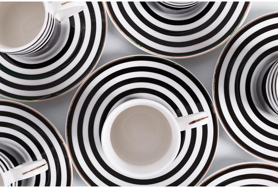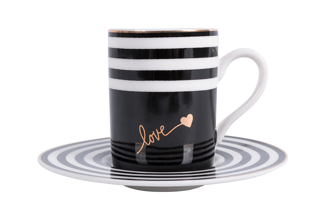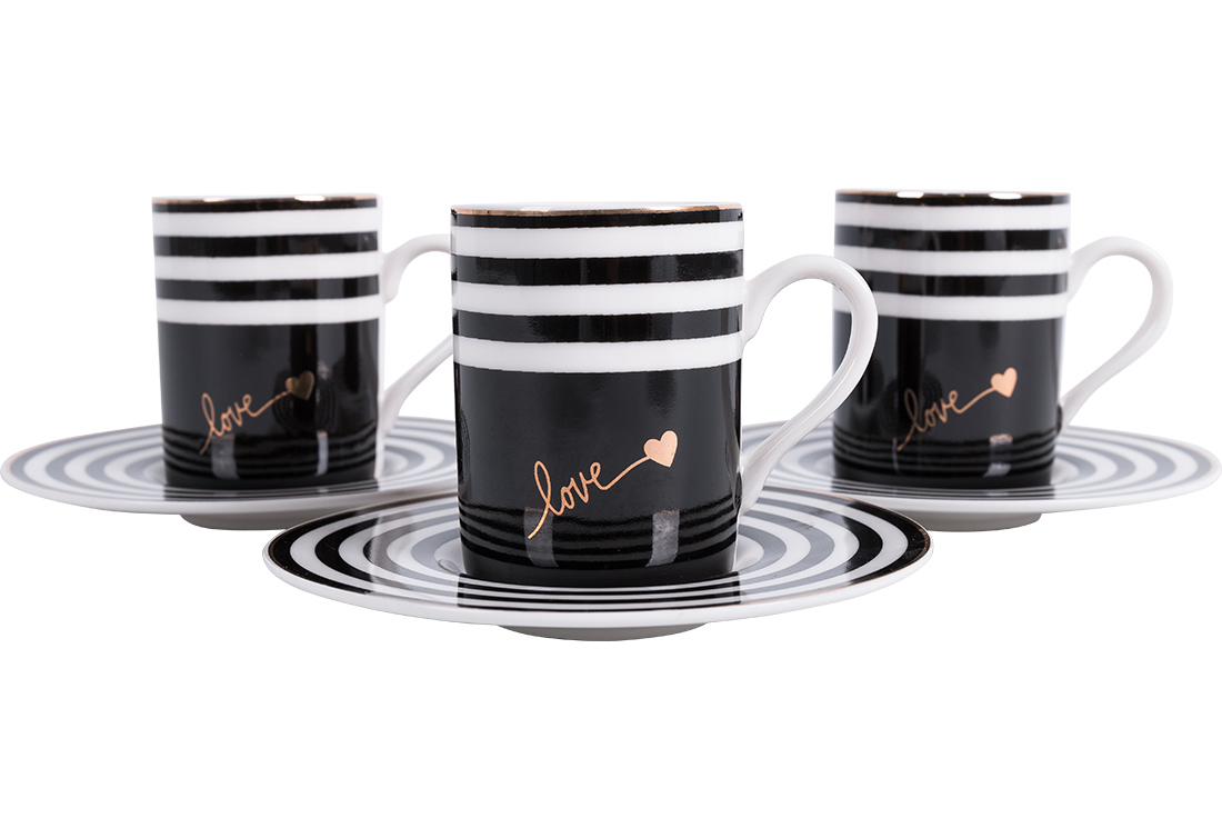Delivery and Dimensions: 1 x Dekonaz Set of 6 Turkish Coffee Cups with 12 Pieces Gift Box | Black and White | By-alzp-180154-1