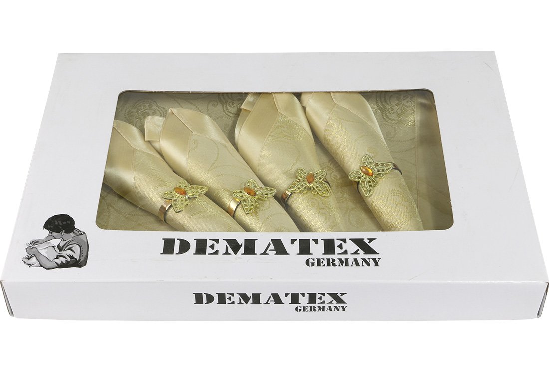 Delivery and Dimensions: 1 x Dematex Butterfly 17 Piece Tablecloth Set | Gold