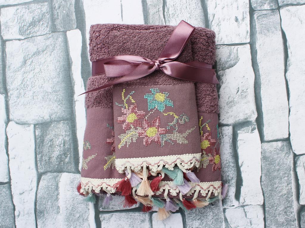 Product information "Dowry Land Diva Embroidered 2 Pcs Towel Set Plum"