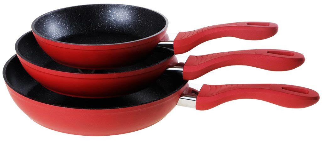 Teslimat ve Boyutlar: 1 x Duygu Granit Döküm Tava Seti | 3 Parça | Kırmızı | DM-90014-rot