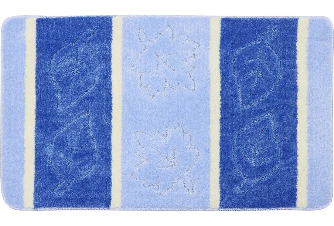 Delivery: 1x Duygu Leaf Pattern 3 Piece Bath Mat Set | Blue | Ban-0028