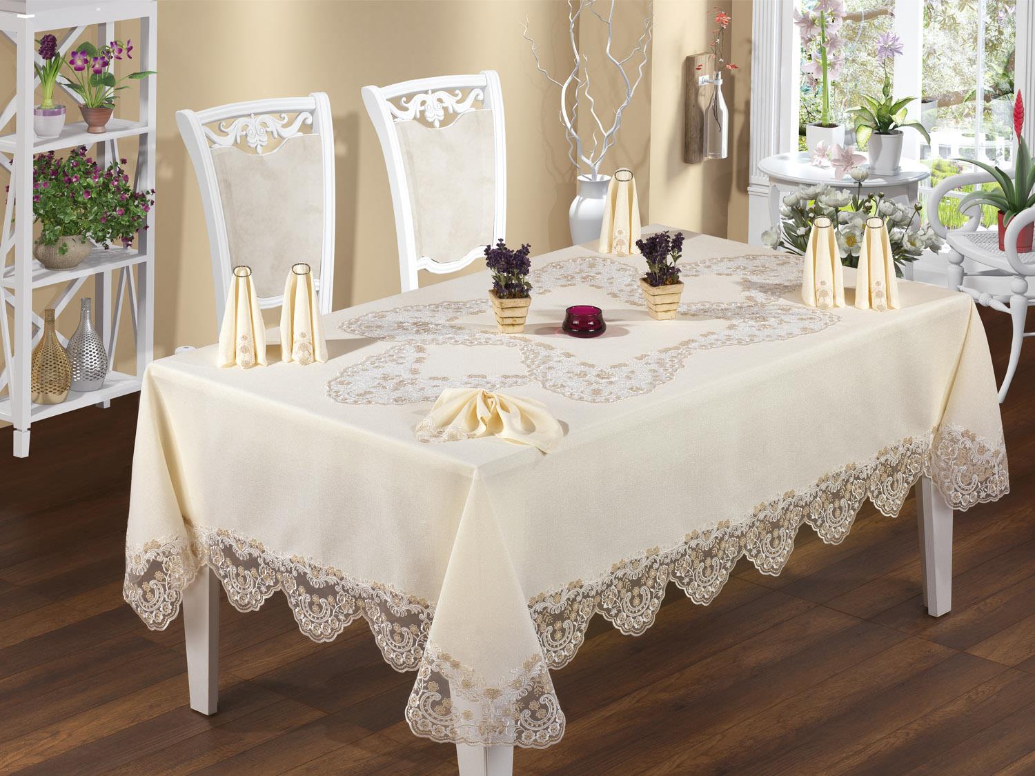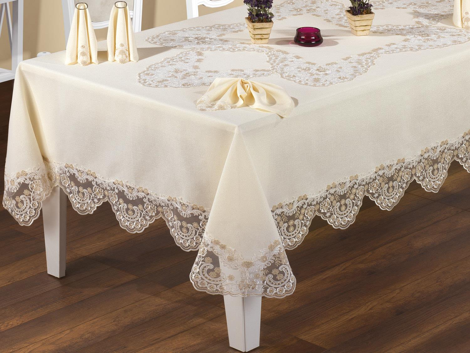 A stylish design is created by applying the French lace tablecloth on 4 sides.