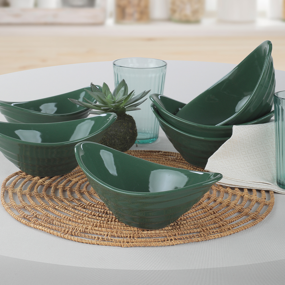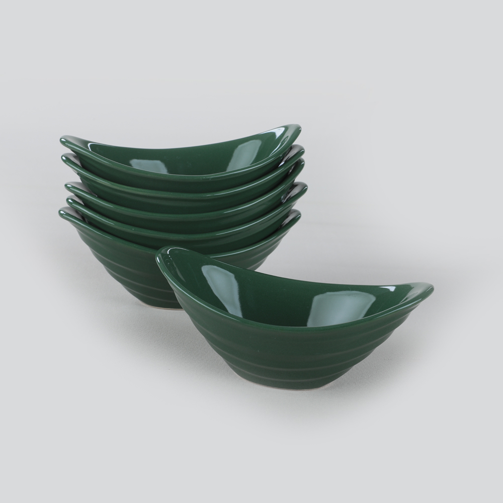 Keramika 6 ruby green gondolas that will accompany you at a simple family dinner or a crowded party will add a very stylish atmosphere to your snack service. These products, which will be the point of making eye-catching presentations with their special colors, will give your table a cool look.