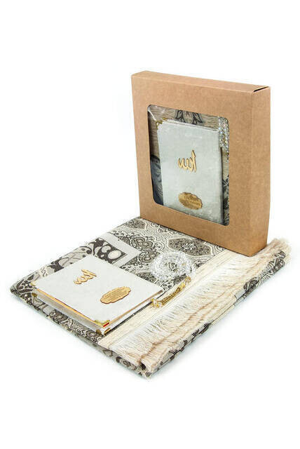 Product information "Hajj Umrah Mevlid Set 26 - Name Printed Velvet Covered Yasin - Prayer Rug - Rosary - Boxed"