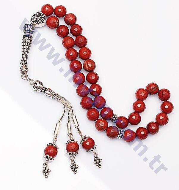 This jasper natural stone rosary is specially selected from the most beautiful shades of jasper stone. The tasbih of this rosary made of jasper stone is in a model and design that you cannot find anywhere, imams and separators, and these jasper stone prayer beads are produced in the model that our company has personally designed. In addition to the original natural stones, some ornamental rosary apparatuses are used in our products to increase the aesthetics of the products and the aesthetic appearance of the products has been increased. In addition, our original natural stone prayer beads are lined on a special rubber rope, which is a non-breakable stone rope, which is resistant to breaking and disintegration, used to eliminate the problem of cutting the rope in the natural stone prayer beads specially produced by our company. In normal use, this rope is highly durable, flexible and long-lasting. With these features, you can easily use our products for a long time without experiencing problems such as thread breakage and rosary dispersion. We recommend you to buy a jasper stone rosary, which is produced with a special design and durable special thread. In addition, the prices of jasper stone prayer beads are at an affordable price close to the wholesale price. You can use these natural stone prayer beads for both shaking and stress relief. In addition, since the number of beads of these prayer beads is 33, you can also use these prayer beads for dhikr or for prayer. You can also use these multi-purpose prayer beads to benefit from their magnificent energy and benefits. Since this product is made of original jasper stone, it has the following psychological and physical benefits of jasper stone; It is known to strengthen and protect the liver, spleen and bladder. Jasper stone has powerful and therapeutic effects and regulates the digestive system. It protects and strengthens the gallbladder. It provides balance in the endocrine system. It makes the person feel healthy and strong. Increases physical resistance. Increases masculine features in men. It has effects that increase love, determination and faith. Jasper stone is the stone of strength and courage. It cleanses the body from toxins. It is effective against snake and spider poisoning. This stone is also known as fertility stone. It increases the ability to speak.