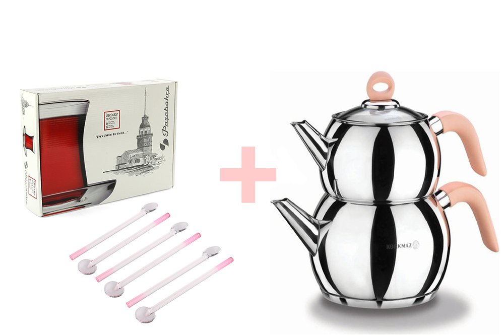 Korkmaz Flamingo Çaydanlık & 6'lı Cam Kaşık Seti & Üsküdar Çay Bardak Seti Hediyeli !