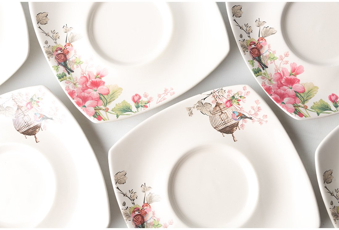 - 6x Porcelain Tea Plate | Width: 13 x 13 cm