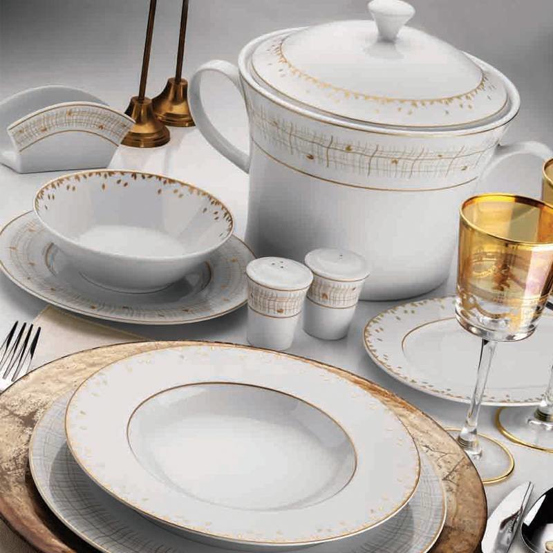 Tabiat ananın rengi olan yeşili altın yaprak işlemeleri ile daha da ortaya çıkaran yemek takımı ile farklı tarzınızı gözler önüne serin. Kütahya porselen kalitesi ve zerafetini misafirlerinizle buluşturun