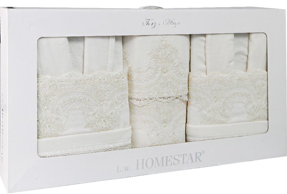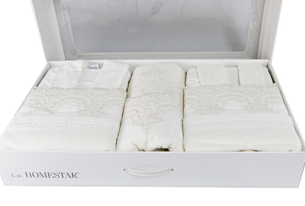 Boyutlar & Teslimat: 1x L.W. Homestar Tarz-ı Abiye Bornoz Seti | 100% Pamuk | 6 Parça | Krem
