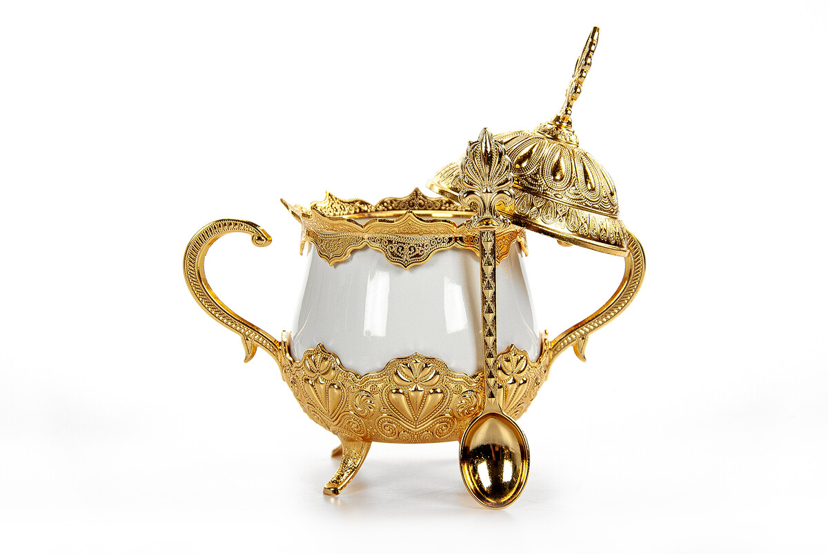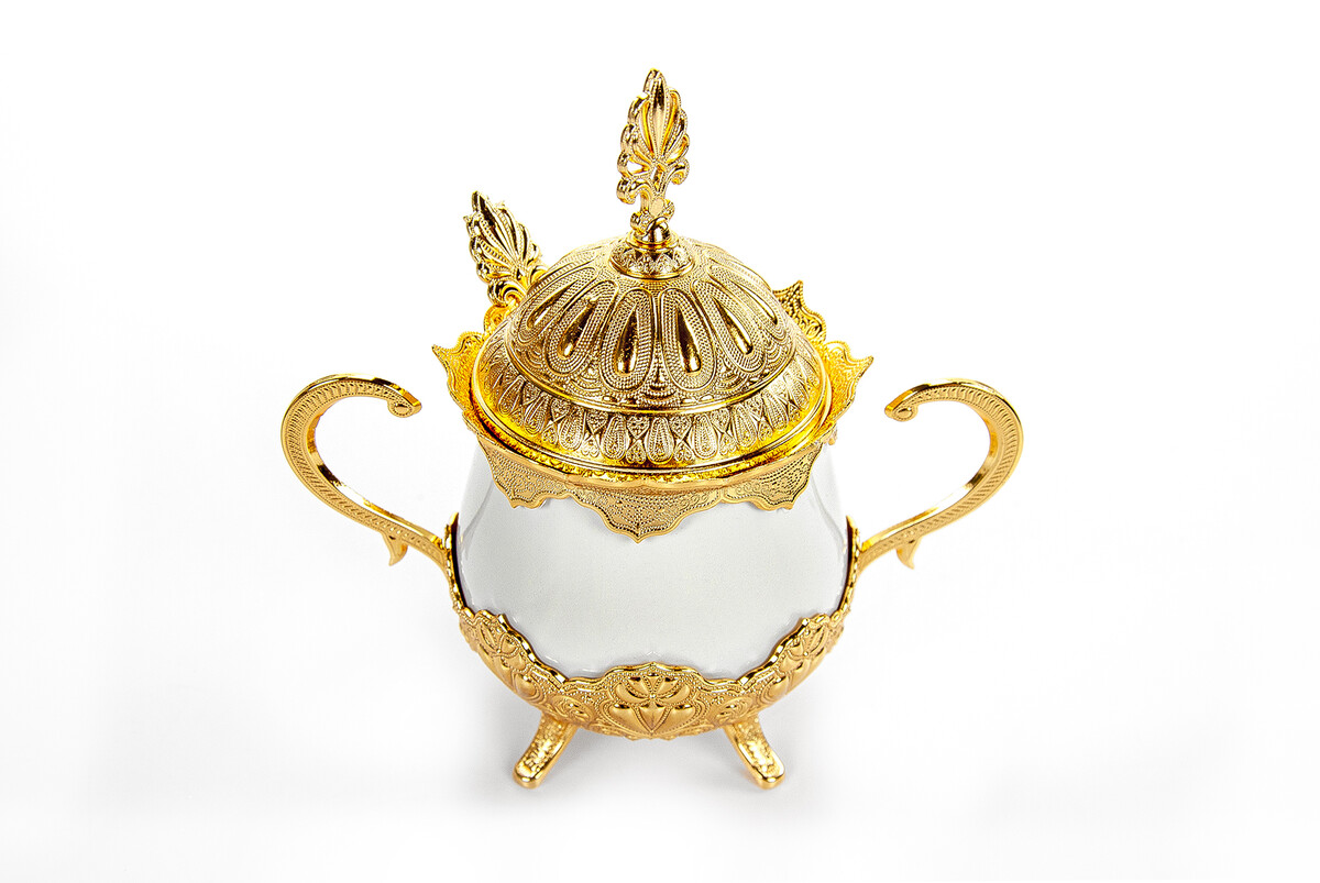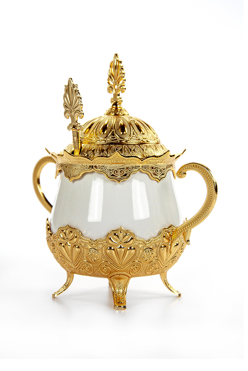 Busem Porcelain Round Sugar Bowl Turkish Delight Holder Gold