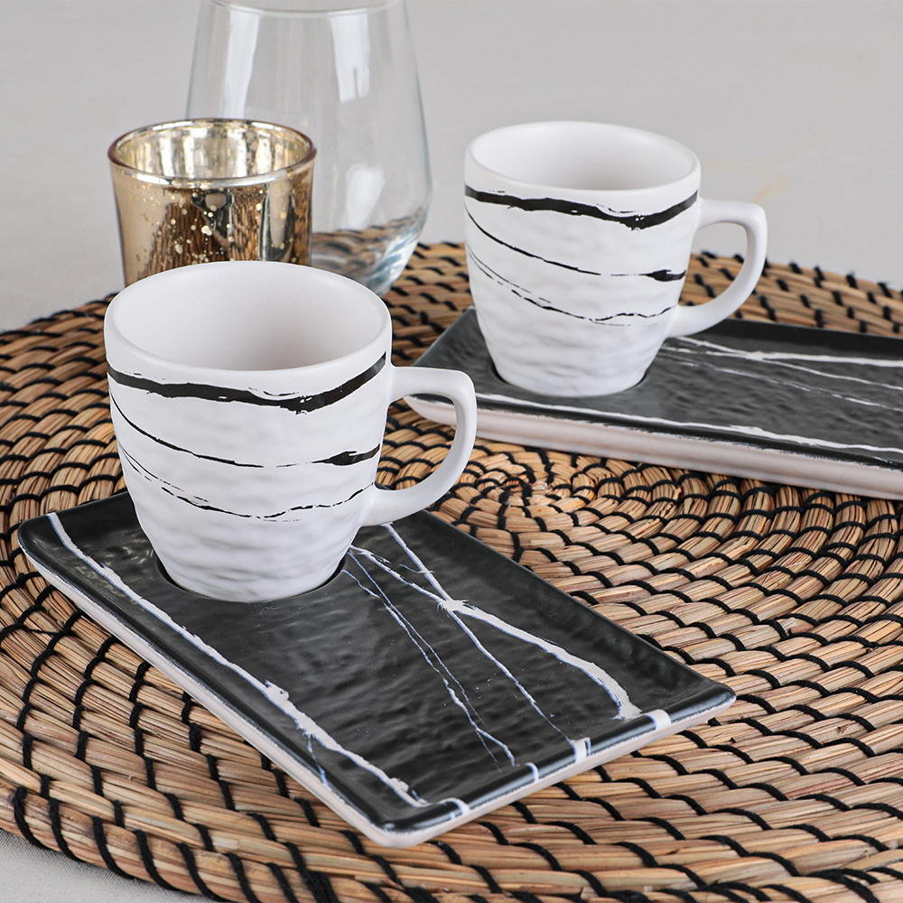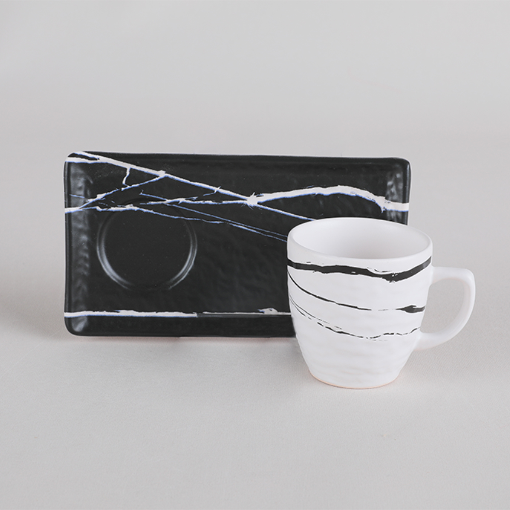 If you are one of those who like to combine different tastes for modern coffee cup models, keramika 2-person marble coffee set is just for you. This set, which has a stylish appearance with its unique black and white colors and marble pattern, will add a completely different atmosphere to your presentation. If you want to bring this product, which is an original design, to coffee lovers, it will be a nice and pleasant gift for them.